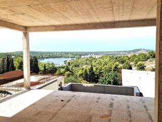 For sale is a modern villa that is under construction, located in Milna on the island of Brac, with a wonderful, open view of the sea and Milna. The building has a total usable area of 330 m2, while the area of the plot is 564 m2. The house has 4 floors that are interconnected by an internal staircase. The basement space can be arranged as a gym, a wine cellar, a sauna or even a cinema space. On the ground floor of the villa there is a kitchen, a dining room, a living room and a toilet. The first floor contains three bedrooms with private bathrooms. The second floor has a superstructure that can be a fourth bedroom or, for example, a multifunctional room with a large terrace. The property also includes a garage for two cars. The stated price is valid for a completed, air-conditioned and unfurnished villa with a swimming pool and landscaped surroundings.