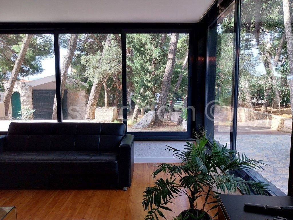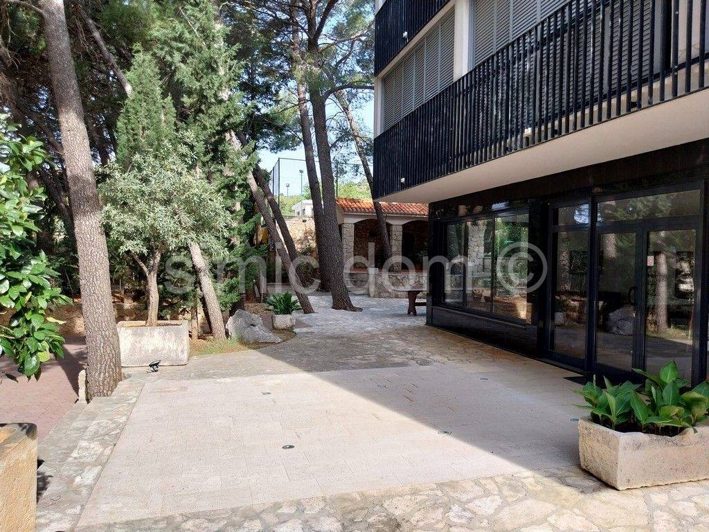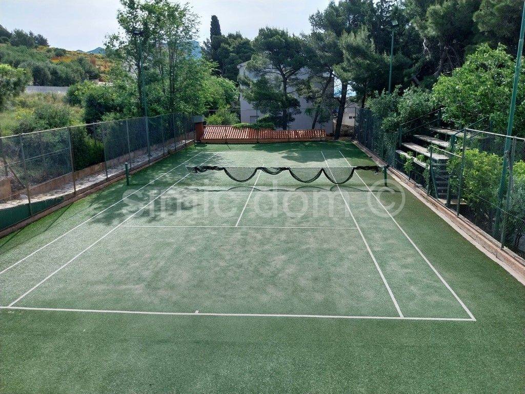 For sale is a property that covers an area of approximately 3,400 m2 and on which there is a house with numerous additional facilities. The house has approximately 600 m2 and consists of a ground floor and three upper floors with nine accommodation units. On the ground floor of the house there is a reception, foyer, toilet, indoor pool, while on each floor there is one separate room with a bathroom and two apartments, each of which has two bedrooms, a bathroom and a toilet. Communication between floors is provided by internal stairs and an elevator. Next to the house there is a large fireplace with a dining area. The property also has a large swimming pool with an area for sunbeds that is partly covered, a café, a bocce court, a tennis court with stands and an equipped changing room. An integral part of the property is the vineyard, under which there is a large cellar, as well as a separate one-bedroom residential building with a kitchen, bathroom and a wonderful terrace under the trees with a beautiful view. Parking is available in the underground garage with ten parking spaces and in the outdoor area with four parking spaces. The property is fenced and offers complete privacy, and the large amount of greenery is particularly impressive. The property offers a wonderful view of the sea and the island of Brac.