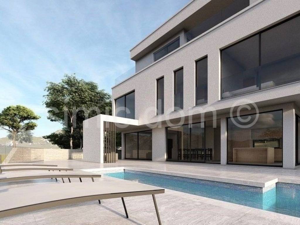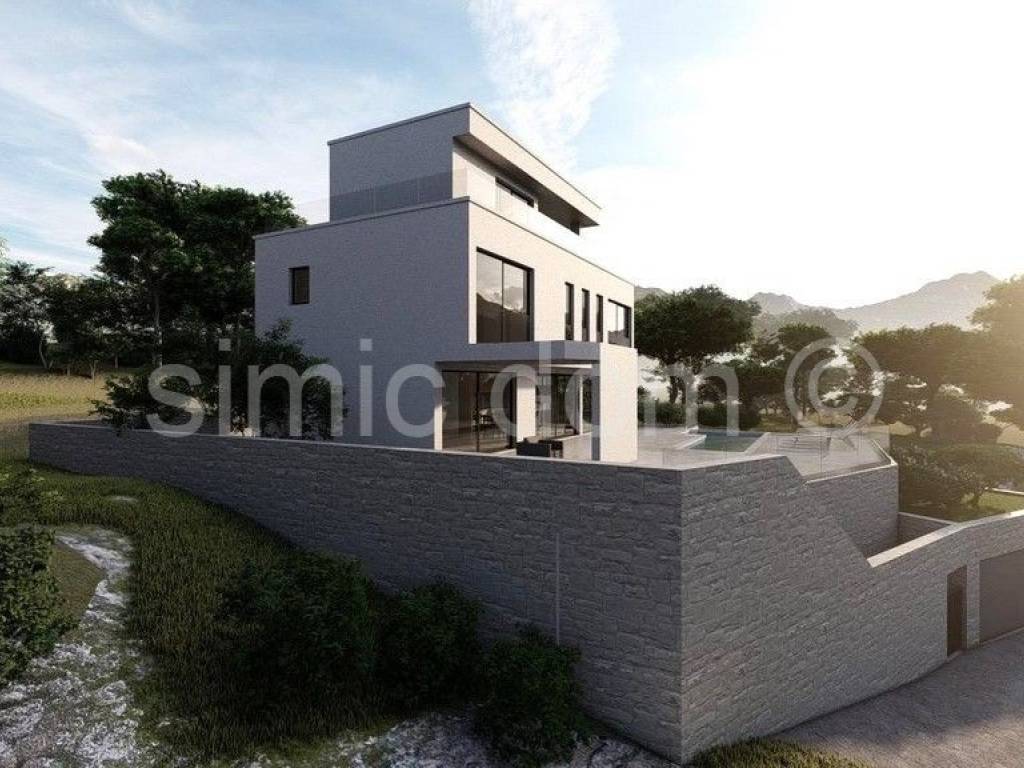 For sale is a beautiful modern villa under construction in Milna on the island of Brac. The villa will consist of four levels with a total usable area of 318 m2 and will enjoy a beautiful view of the sea and the town. The levels will be connected via internal stairs. The basement is designed as a multi-purpose space that can contain a gym, wine cellar, sauna or cinema room. The ground floor contains a living room, a dining room, a kitchen and a toilet. On the first floor there are three bedrooms with private bathrooms, while the second floor has an extension and can be a fourth bedroom or a multifunctional space with a spacious terrace. In addition to the villa, the 467 m2 plot will also include a garage for two cars and a beautifully designed green exterior with a swimming pool, a summer kitchen and a fireplace. The indicated price is valid for a finished and air-conditioned building with a swimming pool and a fully landscaped garden, without furniture.
