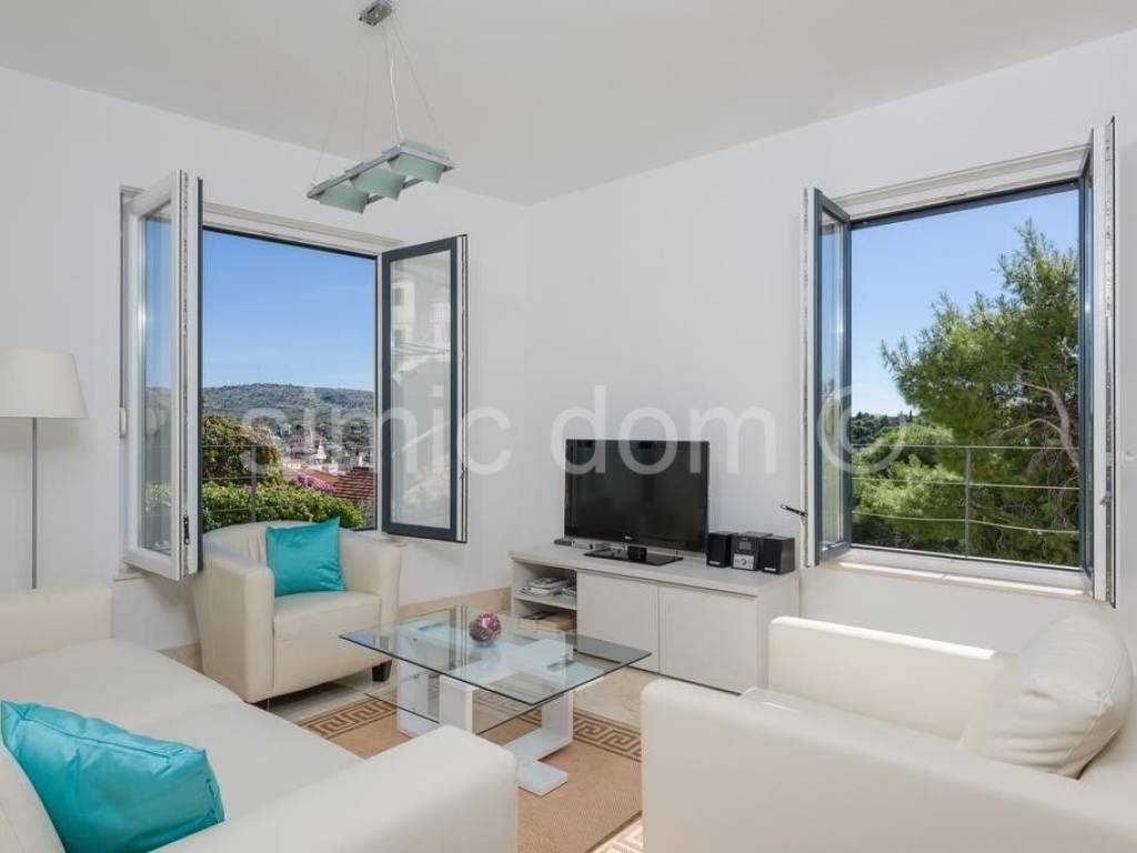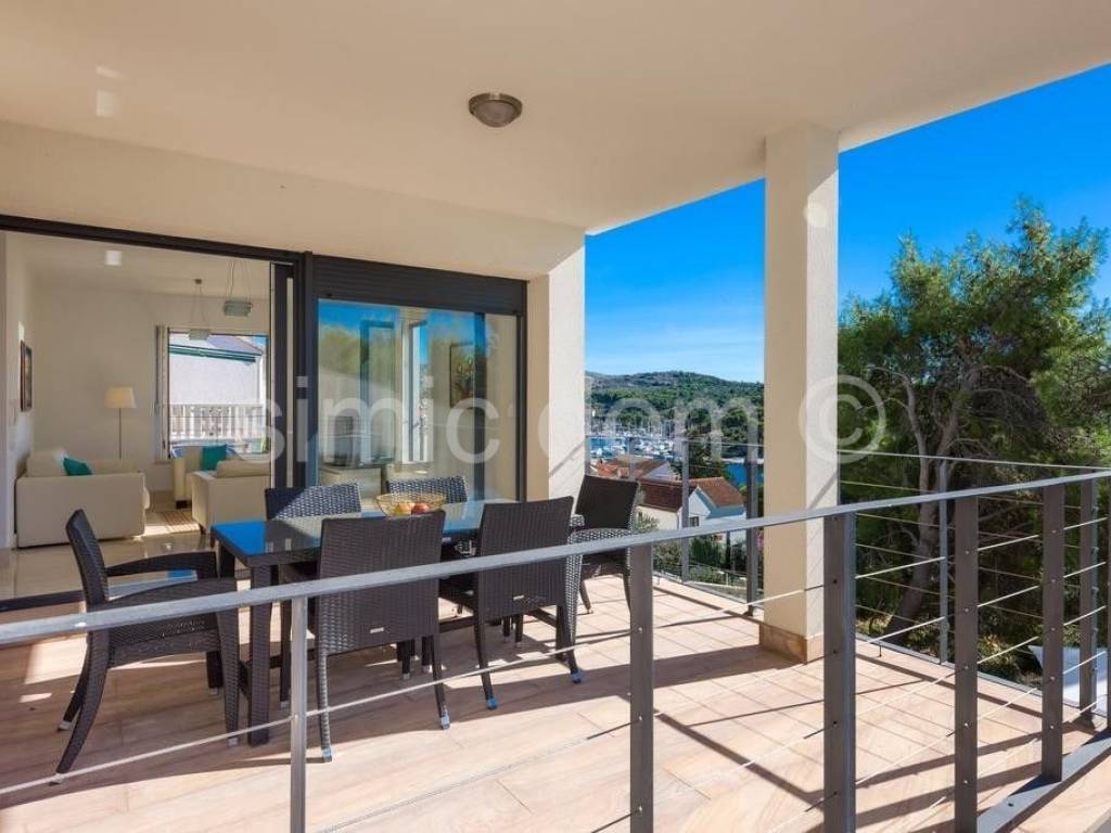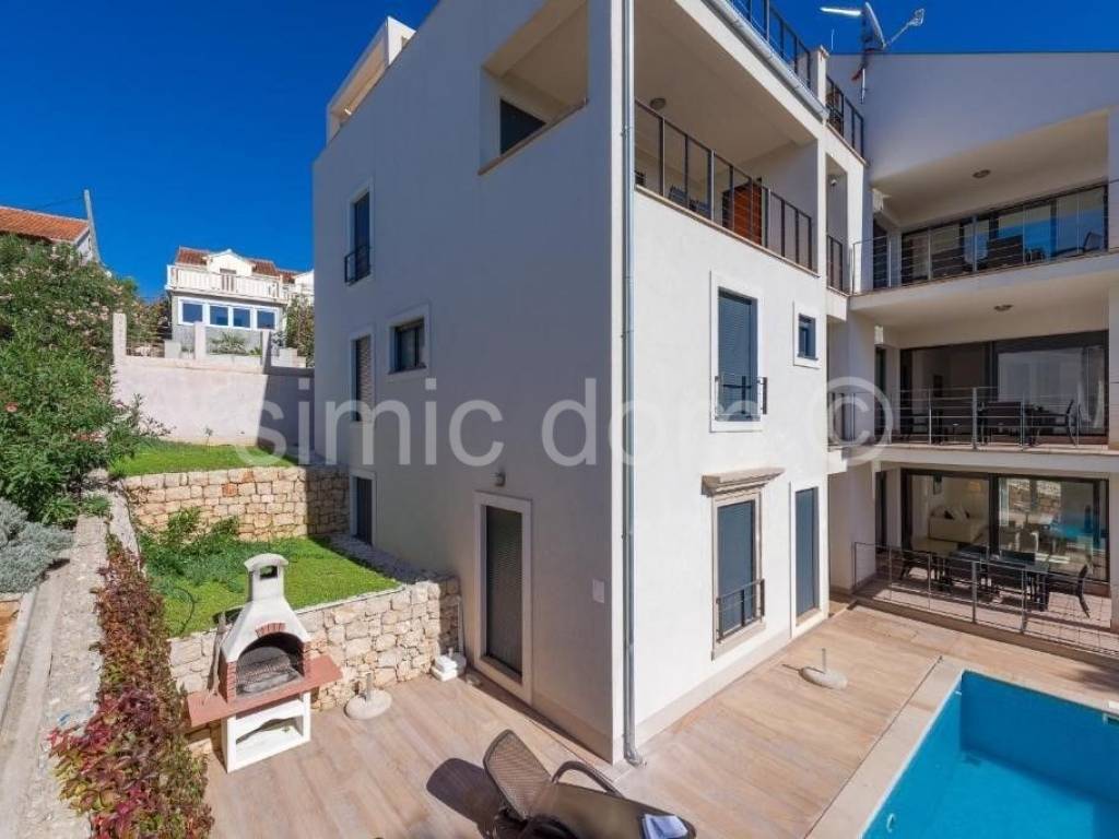 For sale is a villa with apartments and a swimming pool on the island of Brac, located near the sea. The villa has an area of 448 m2 and consists of a ground floor, the first and second floors and the attic. The area of the villa is divided into 4 apartments with a total of 10 bedrooms - two are two-bedroom and two are three-bedroom. The apartments are excellently equipped and furnished, which makes this property an excellent investment for rental business. Some apartments also have a terrace or balcony with a beautiful view. The villa has an outdoor pool and private parking.