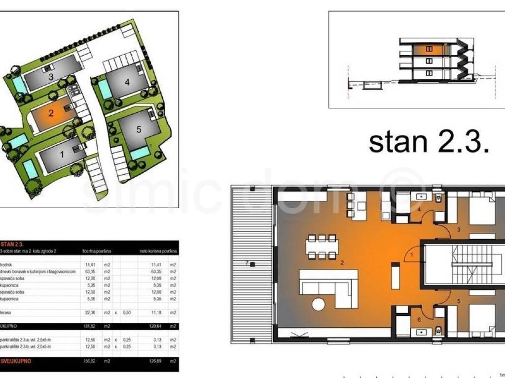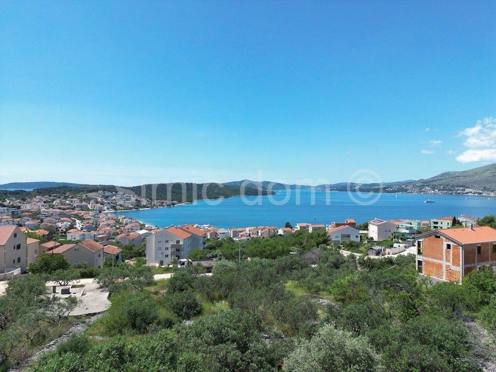 For sale is a penthouse apartment in a high-quality new construction on Ciovo. The apartment is located on the second floor of a smaller south-facing building and has a total floor area of 131.82m2, of which 109.46m2 is internal space. Including coefficients for the terrace and parking spaces, the property has a total net area of 126.89m2. The apartment consists of a hallway, two bathrooms, two bedrooms, a kitchen and a large living room with an open-concept dining room. From the living room you can access a large terrace with a superb view of the sea and Ciovo. Upon completion of construction, the building and all its apartments will be superbly equipped, underfloor heating will be installed throughout the entire apartment, and air conditioners will be installed in all rooms. The apartment will have smart sensors and an intercom with video and remote control, as well as video surveillance. Two outdoor parking spaces are included in the price of the apartment. These apartments are great for buyers looking for a property to live in, as well as for those looking for a vacation property. Buyers are exempt from real estate sales tax. Expected move-in is autumn 2024.