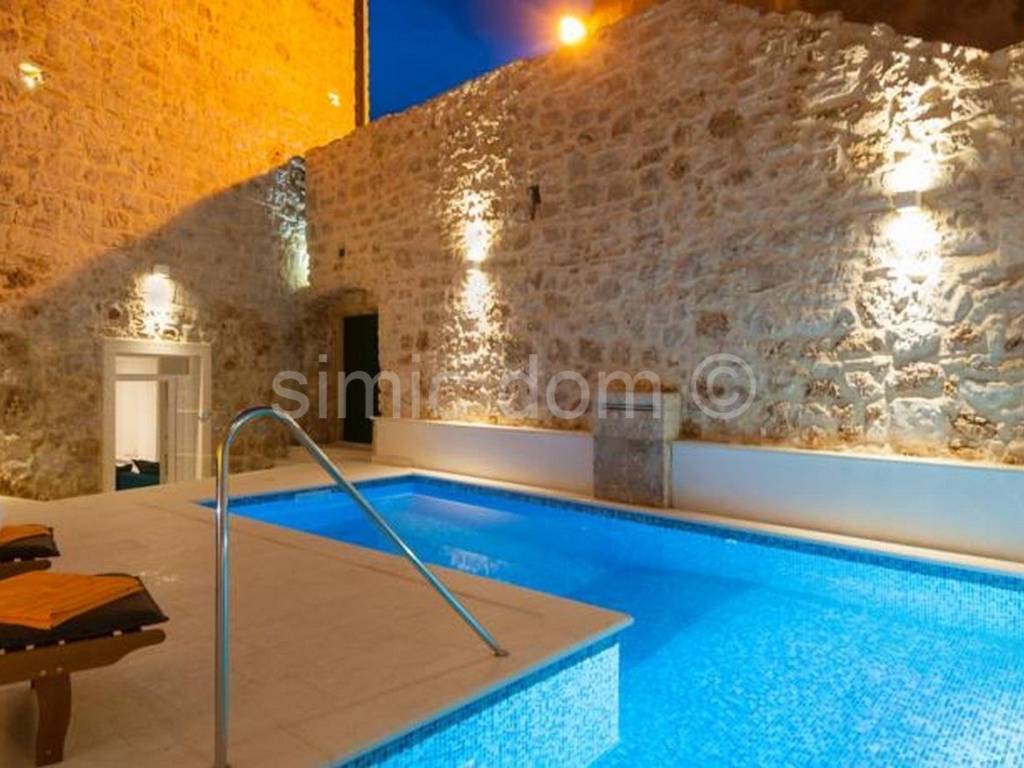 For sale is a beautifully renovated stone house located in Bol on Brac. Total living surface of the property is about 280 sqm and it includes a private yard with a pool. The ground floor of the house features an open plan space with kitchen / dining / living room, a bathroom / laundry room, a sauna and jacuzzi. This level is connected with the pool and its terrace of 70 sqm, also including an outdoor shower, a barbecue and an engine room. An interior staircase leads up to the first and second floor that have almost identical layouts each consisting of two bedrooms with private bathrooms. There is also the fourth level an attic space with one more bedroom and a big, 30 sqm terrace with a wonderful view of the sea and the town center.