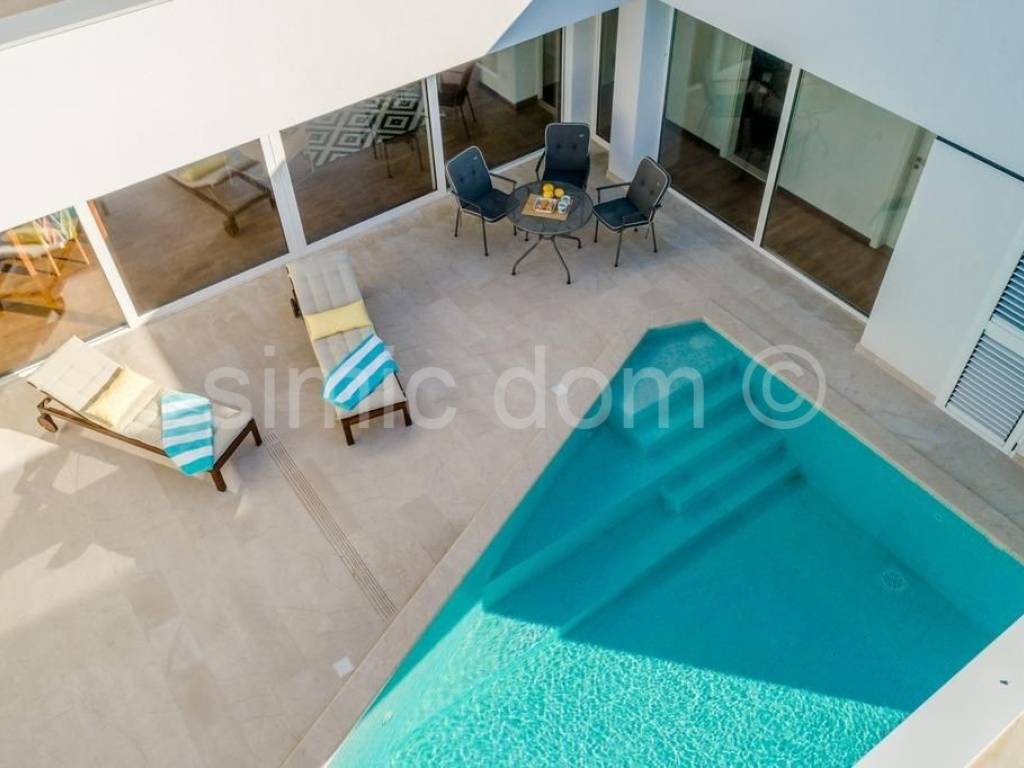 We mediate the sale of an amazing new villa on Brac, in the lovely inland village of Nerezisca. The house has a total surface of 332,89 sqm which includes an interior of 118,58 sqm, a beautiful pool of 36 sqm and a total of 178,31 sqm in terraces. The interior comprises a spacious living and dining room, a kitchen, four bedrooms and four bathrooms (two of the bathrooms are included as private to two of the bedrooms). The property includes an additional smaller object with a garage and a cellar space, with a total of 38,25 sqm. This is a luxurious and beautifully designed property, perfect for a second home in the heart of the beautiful Brac island.