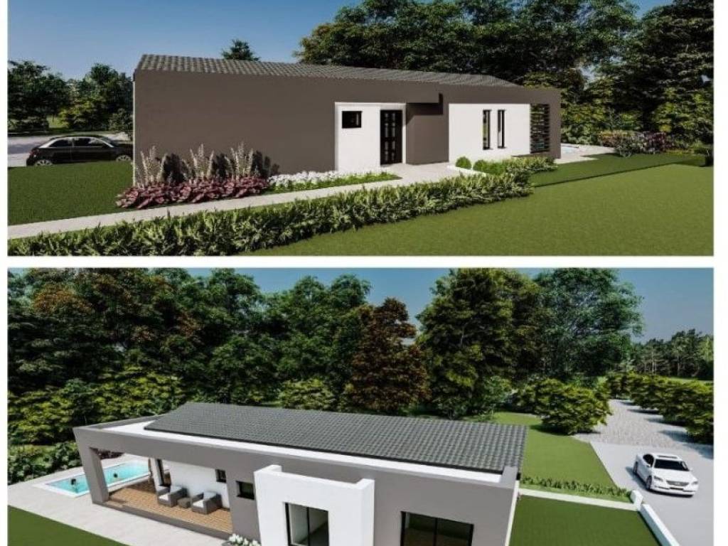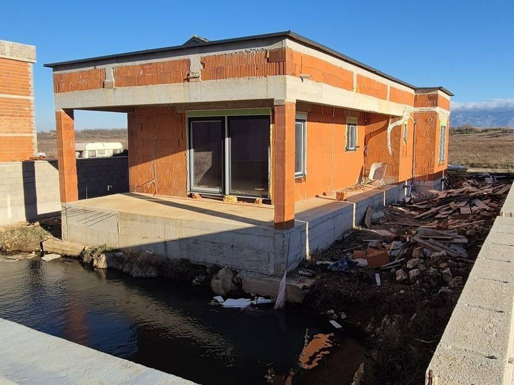 Nekretnina je ozidana, stavljena pod krov, zatvorena PVC stolarijom, Instalacija struje, vode provedena. Glazure, podno grijanje. , Bazen