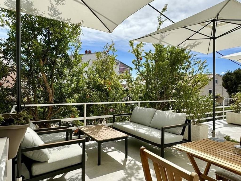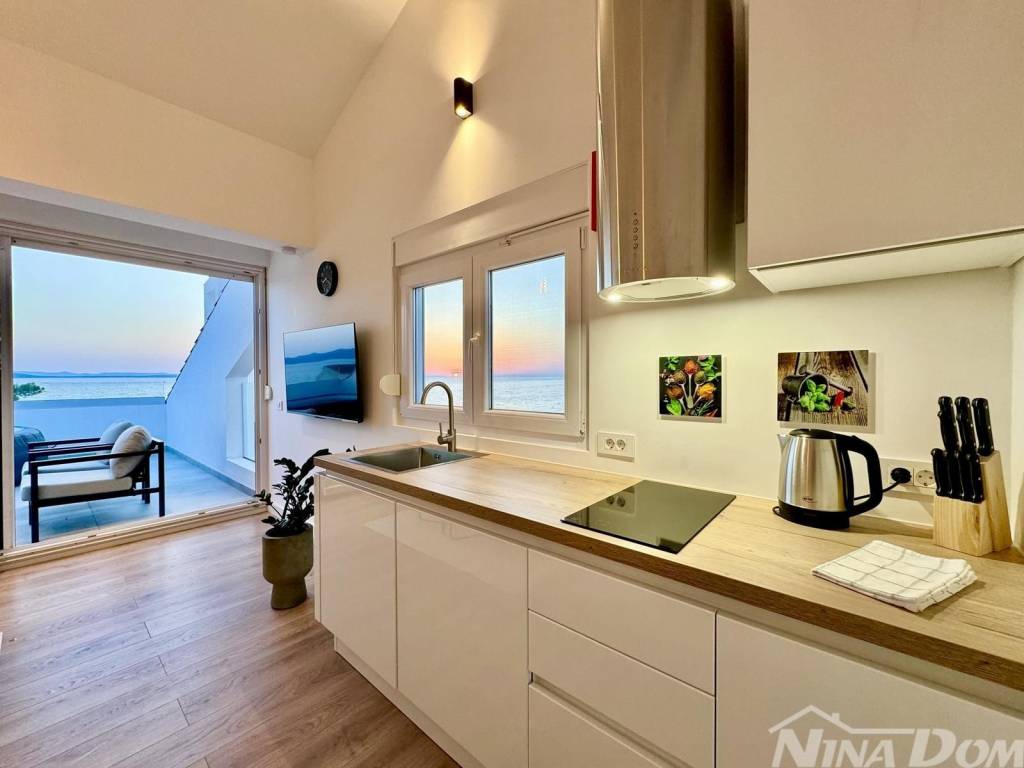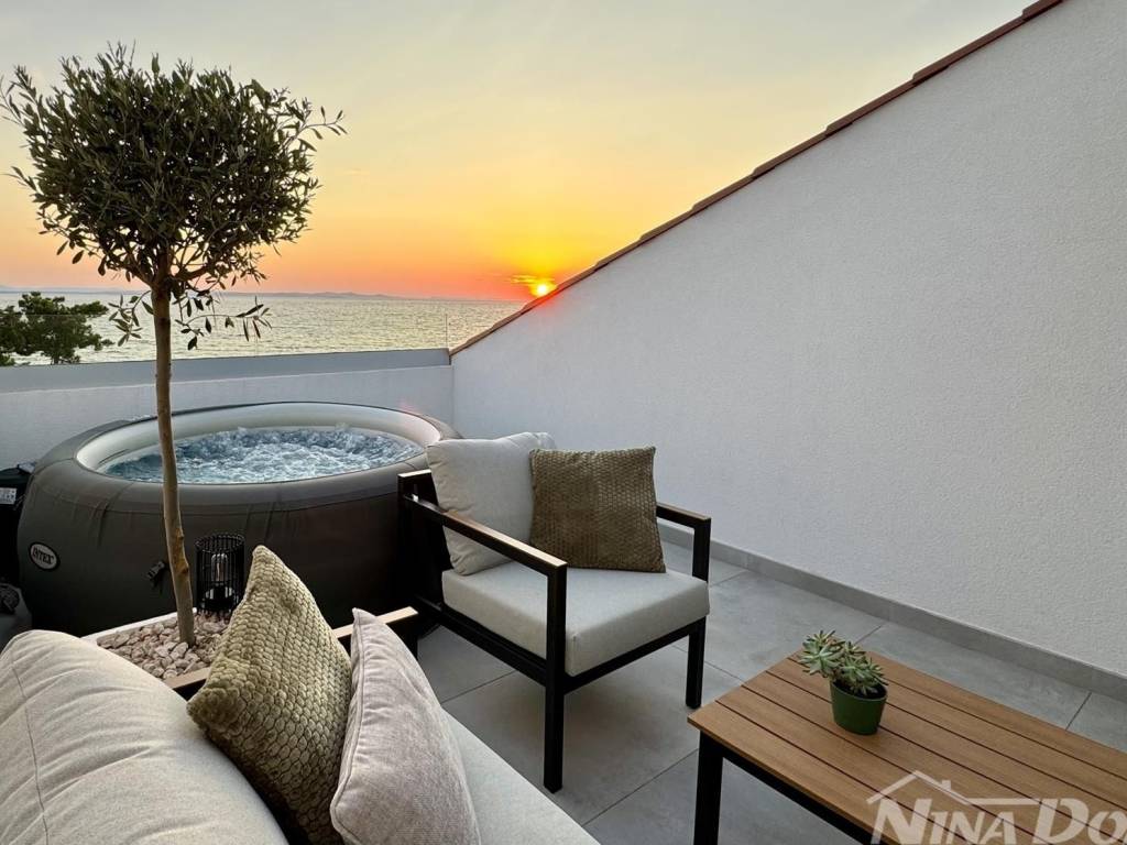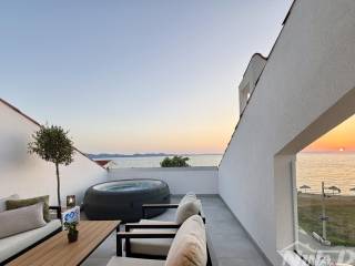 Diklo prvi red na prometnici,udaljeno svega četrdesert metara od mora,vrhunski poslovno stambeni objekat.Sastoji se od 9 potpuno opremljenih,renoviranih apartmana te jednog velikog master apartmana,te dviju poslovnih jedinica.U prizemlju se nalaze dva poslovna prostora,od kojih je trenutno caffe bar(mini kuhinja za doručak) u funkciji,fittness studio,te self servis praona rublja.Na ostalim etažama se nalaze ostale apartmanske jedinice iz kojih se pruža prekrasan pogled na zadarski kanal i otoke.Na dodatnoj čestici,neposredno uz nekretninu,nalaze se komfornih 11 parking mjesta.Kuća se prodaje komplet uhodana u turizam,sa svom opremom i namještajem.Blizina svih sadržaja,pekara,trgovina hranom,bankomat,prekrasna plaža i ostalo...Idealno kao investicija,za bavljenje turizmom i povratom investicije.Za sva pitanja i obilazak,stojimo na raspolaganju!