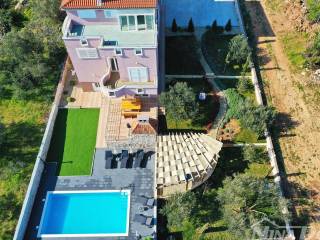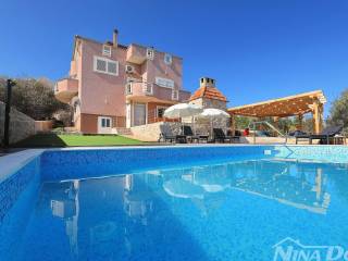 Prodaje se luksuzna apartmanska kuća sa tri stambene jedinice na otoku Pašmanu,mjesto Dobropoljana.Iz gotovo svakog dijela kuće,pruža se prekrasan panoramski pogled na morsku obalu.Kuća je rađena za sebe,za vlasnike,a ne za daljnju prodaju,tako da je vođena briga o kvaliteti prilikom gradnje.Sastoji se od tri stambene jedinice i podruma.U prizemlju se nalazi prekrasan komforan trosoban apartman.Na prvome katu dvososban apartrman,a na zadnjoj drugoj etaži se nalazi dvoetažni dvosoban penthouse sa prostranom terasom.Kuća se prodaje komplet namještena sa svim uređajima osim osobnih stvari.Grijanje je izvedeno uspomoću peći na pelete,a hlađenje i grijanje sa klima uređajima.U stražnjem dijelu kuće se nalaze parking mjesta sa prostranom garažom.U prednjem dijelu dvorišta se nalazi prekrasan vrt sa bazenom i sunčalištem.Kuća je idealna za bavljenje turizmom i boravak tijekom cijele godine.Za sva dodatna pitanja i obilazak,stojimo na raspolaganju.