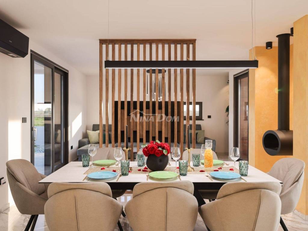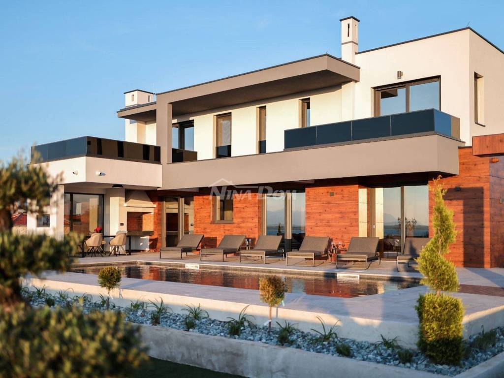 Lijepo uređena moderna luksuzna Vila, smještena u mirnom dijelu naselja s pogledom na more i Velebit.