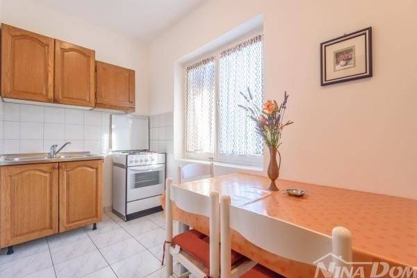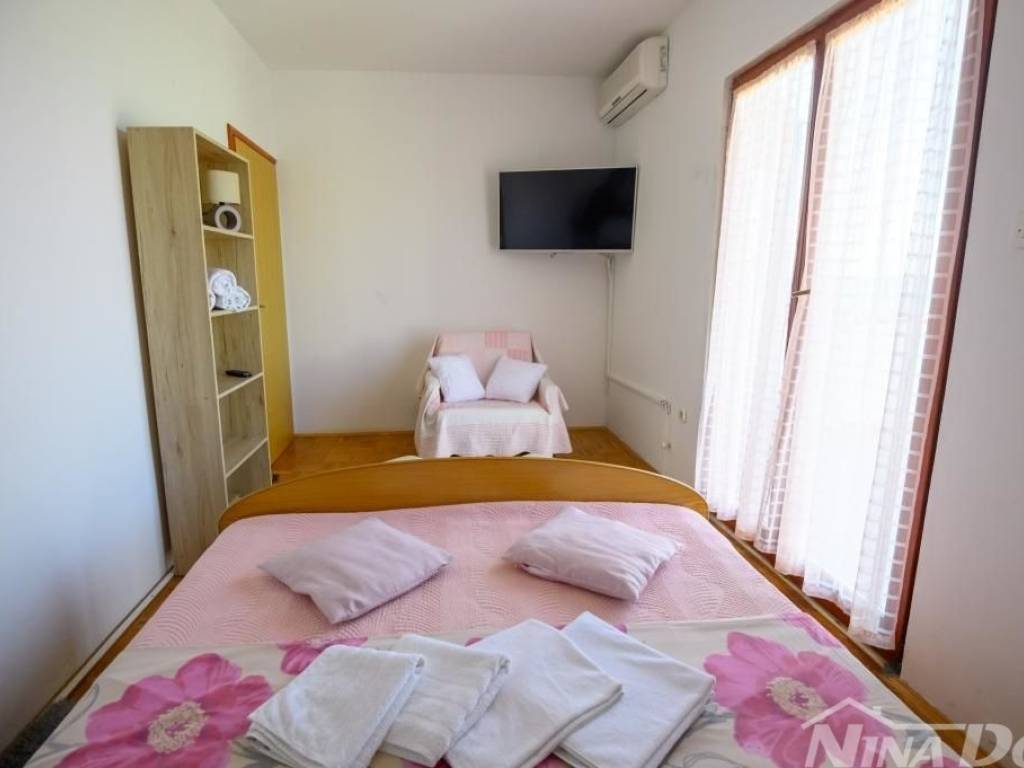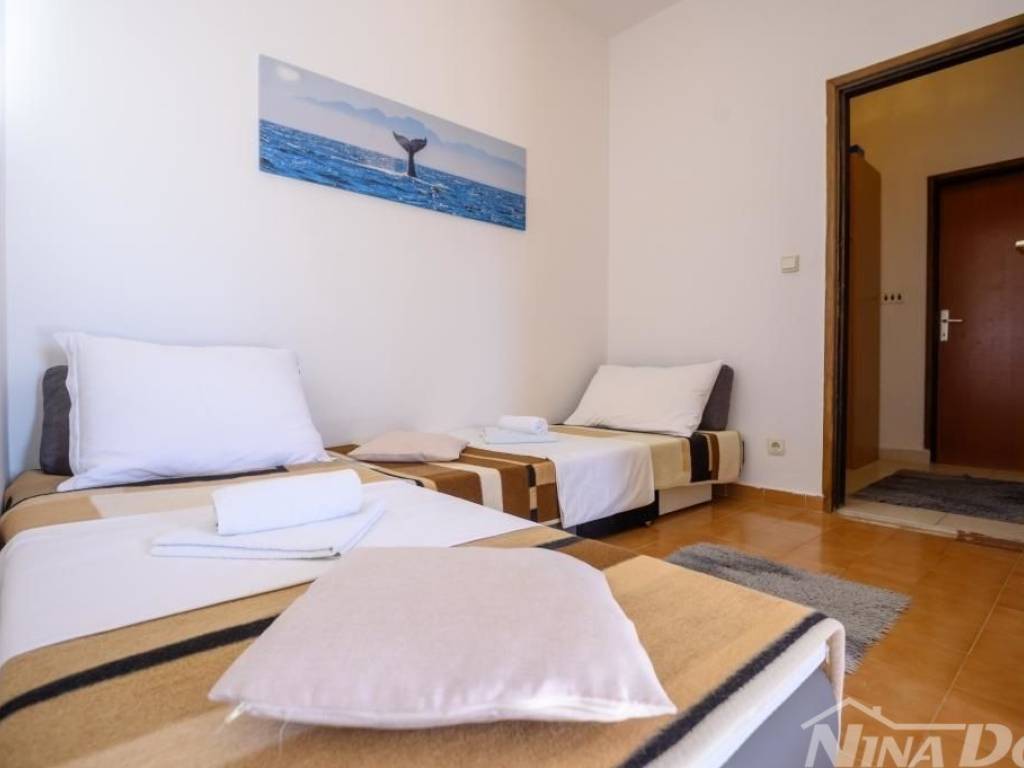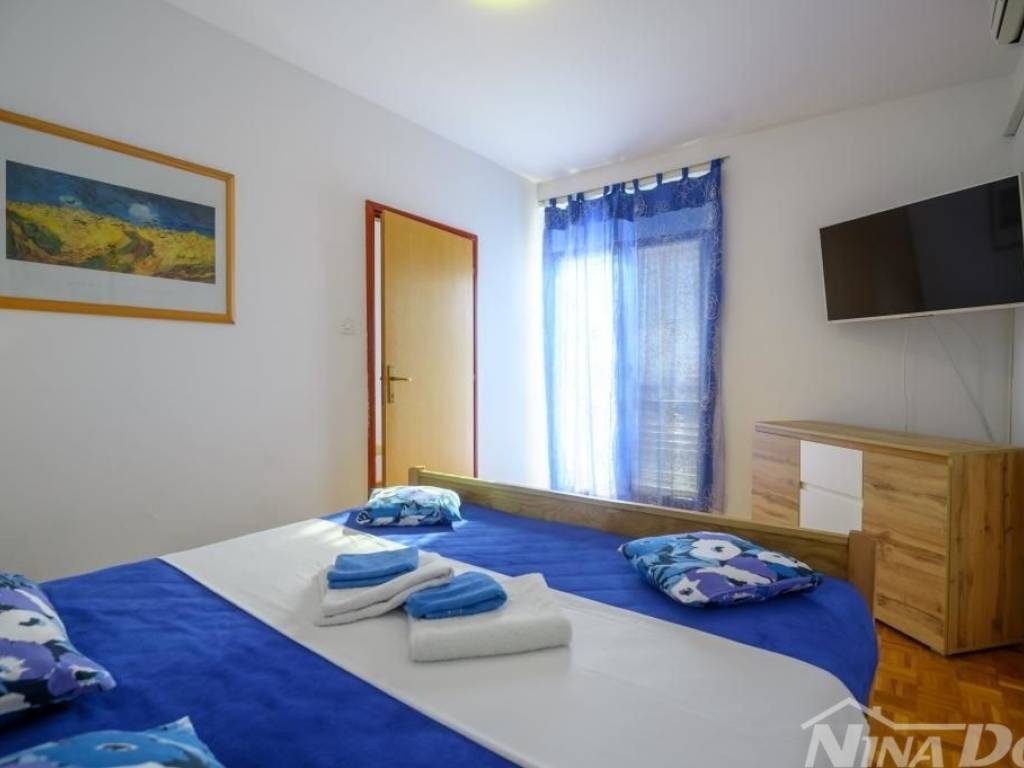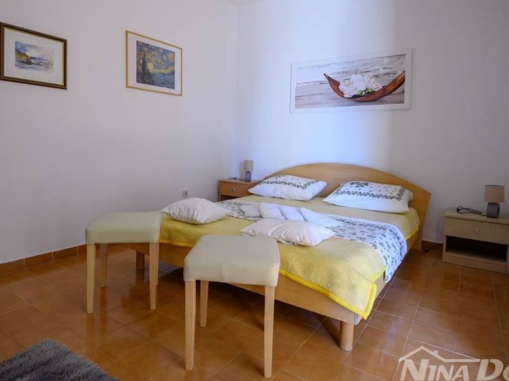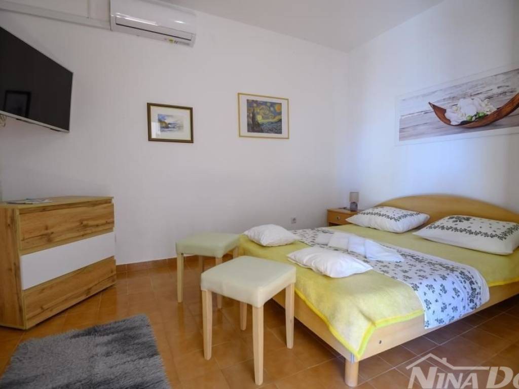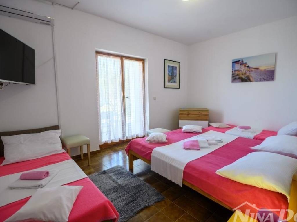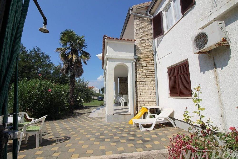 Obiteljska kuća u kojoj se nalaze više stambenih jedinica tlocrtnih vanjskih dimenzija 129 m2 + 35 m2 gospodarska zgrada. Sastoji se od prizemlja i kata s unutarnjim stepenicama za gornju etažu. Predivan pogled na more, od plaže i mora udaljena je svega 80 metara. Klimatizirana, spojena na gradski vodovod, elektro mrežu. 2021 godine renovira je kompletno novi krov, ostali dio kuće iziskuje dodatna ulaganja. Okućnica prostrana slobodnog protora 1231 m2, stoga je veliki potencijal za izgradnju dodatnih objekata jer je cijela parcela u građevinskoj zoni.