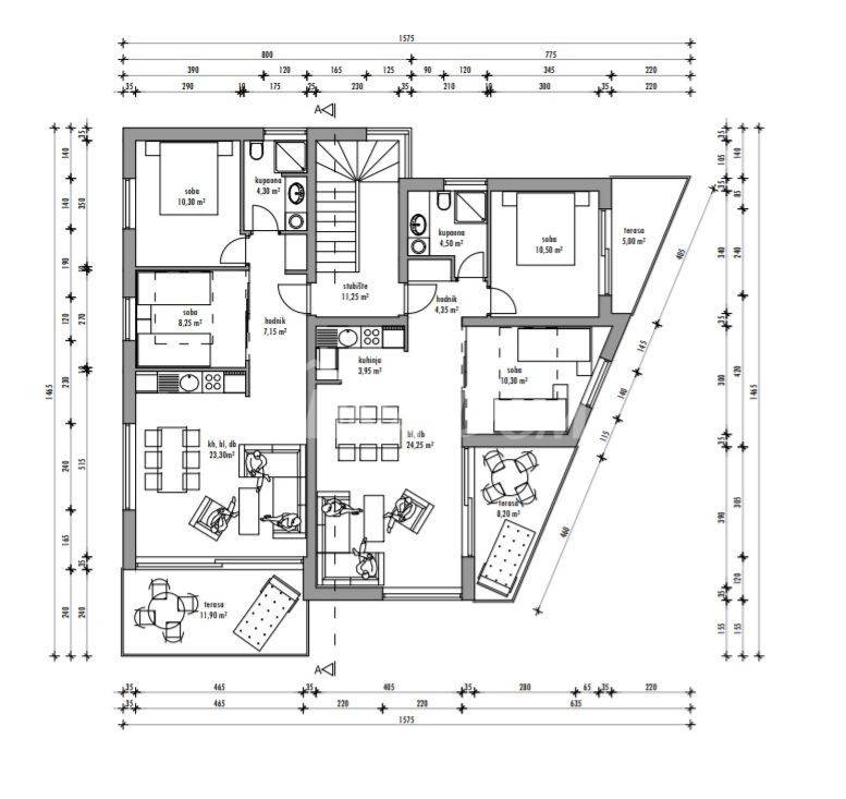 Vanjska stolarija je termo aluminijska sa troslojnim staklima punjenim plinom za toplinsku izolaciju (parsol boja)