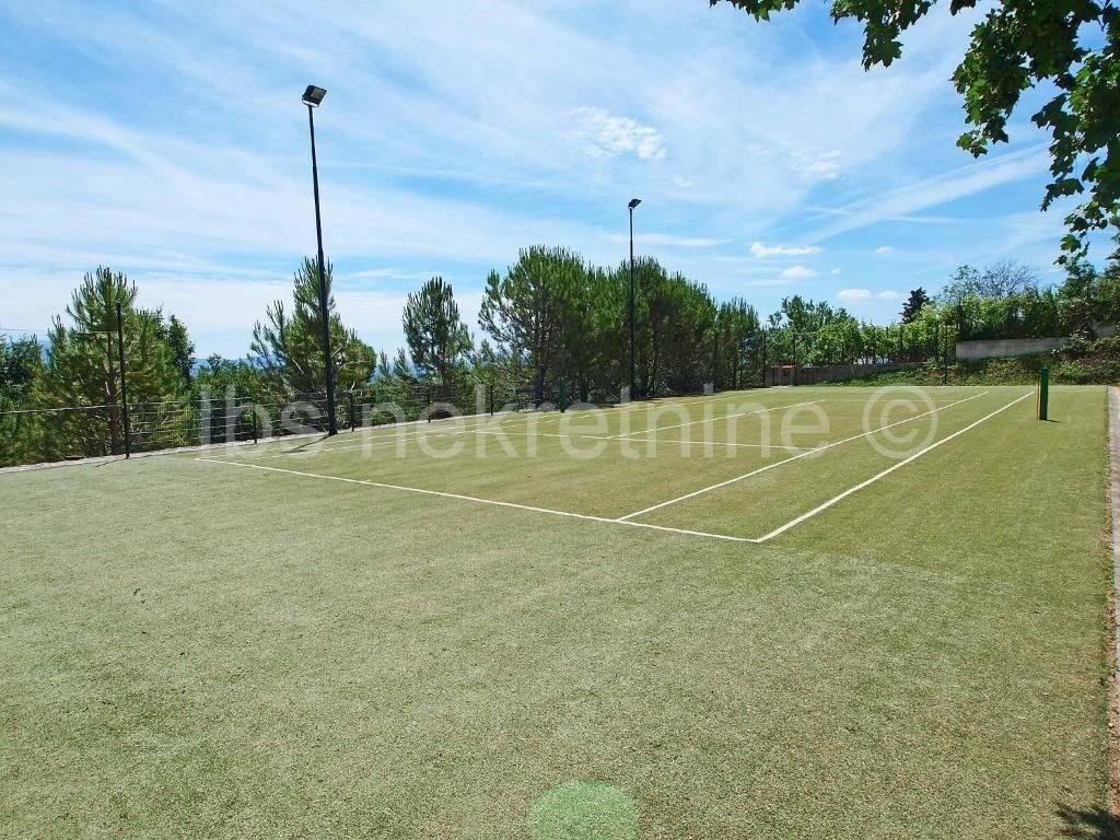 Posredujemo pri prodaji imanja okruženog zelenilom a koje se nalazi u neposrednoj blizini grada Drniša i ulaza u N.P. Krka. Stambeni dio se sastoji od dvije kuće koje su povezane. Ukupna površina iznosi 210m2. Kuća novije građe se sastoji od prizemlja gdje se nalazi spavaća soba i kupaonica, dok su na katu dvije spavaće sobe i kupaonica, podrum služi kao ostava i vinska konoba. Druga kuća je kamene građe građena 1920 i u njoj se nalazi kuhinja, mini bar i blagovaonica koja može ugostiti preko 20 osoba. Kuća je opremljena klima uređajem i velikom peći na drva kao dodatni izvor grijanja zimi, a ujedno i kao stilski dodatak. Na imanju se nalazi vanjski bazen dimenzija 10x5m s električnom kliznom stijenkom a opremljen je Jacuzzi uređajem, grijačem vode, automatskim čiščenjem bazena i unutarnjim reflektorom. na imanju se nalazi i teniski teren s umjetnom travom i noćnom rasvjetom. Od ostalih sadržaja valja još nabrojiti stolni nogomet, biljar, veliki grill, vanjska natkrivena terasa, teren za boće, domaću kužinu za suženje mesa, gdje se također mogu pripremati jela ispod peke. Do parkinga se dolazi popločanom stazom koja vodi između stabala jabuka, šljiva i maslina. Sama okućnica je besprijekorno održavana, sistem navodnjavanja je od kišnice koja se skuplja u podzemni bunar. Imanje je kompletno okruženo velik zidom ponegdje do visine i do 2m, a ulazi se kroz električno pokretna vrata s parlafonom. Jeddnom riječju, Oaza.