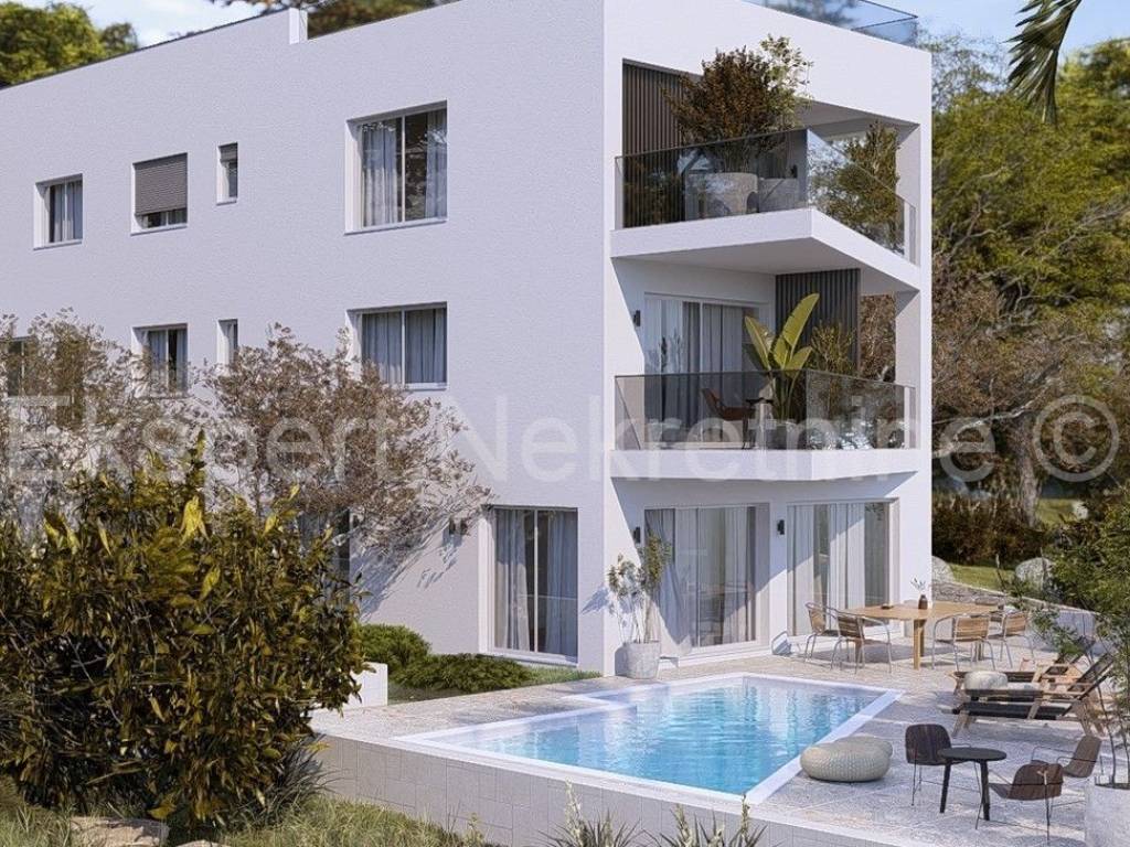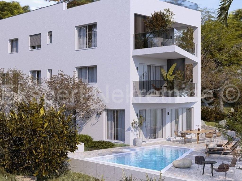 Zgrada se nalazi na odličnoj lokaciji južne strane Čiova, udaljena 20 m od mora i plaže. Kvalitetna gradnja (jaccuzzi,vrhunska keramika,podno grijanje u cijelom stanu sa regulacjiom u svim prostorijama,klima uređaj u svim prostorijama, komarice,električne rolete, pvc stolarija,otvaranje vrata sa kodom(šifrom) itd..).Ishođenje građevinske dozvole je pri kraju,a uskoro se očekuje i početak radova a dovršetak 12 mjeseci kasnije.Vlasništvo uredno.