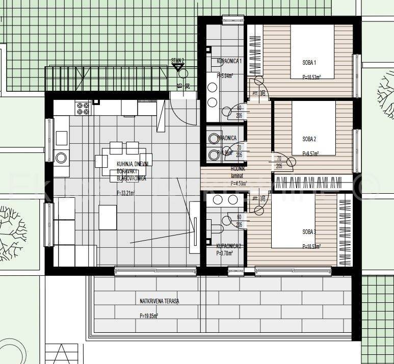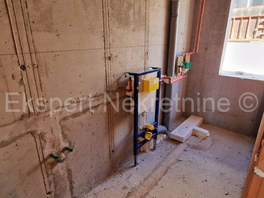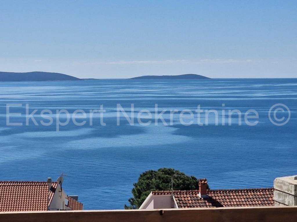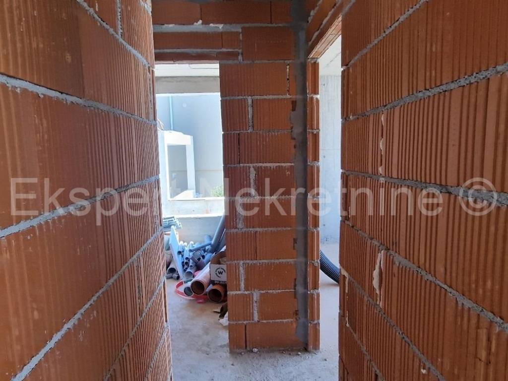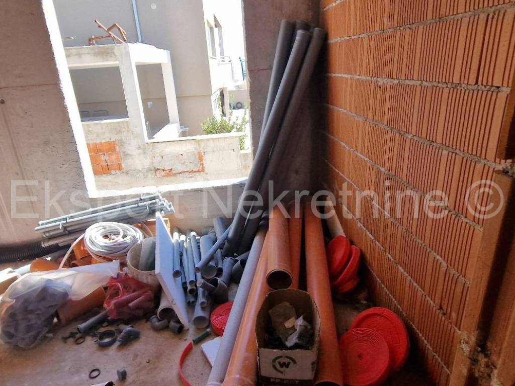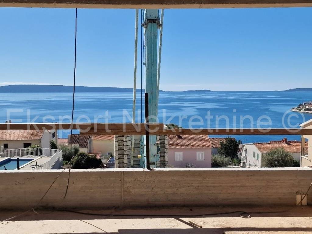 Čiovo, Okrug Gornji, three-bedroom apartment 79 m2 + covered terrace 20 m2 in a new building, only 220 m from the sea and beach with a sea view. The apartment is located on the first floor of the building, east-south-west-north oriented, and consists of three bedrooms, one of which has its own bathroom, bathroom, hallway, kitchen with dining room and large living room and a large terrace (20m2) with a beautiful and open view of the sea and islands. The apartment has an open view of the sea and islands. The apartment also has one large outdoor parking space.The building is located in an excellent location, south side of Čiovo, only 220 m from the sea and beach. Quality construction (quality ceramics, underfloor heating throughout the apartment, air conditioning in all rooms, mosquito nets, electric shutters, PVC joinery, etc.). The building is in the phase of rough construction works and the planned completion is the end of 2025.Payment by construction stages. Ownership in order.For more information, contact the agency.