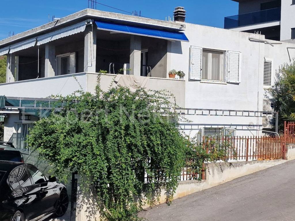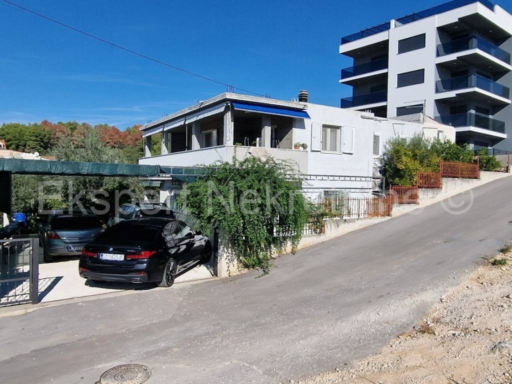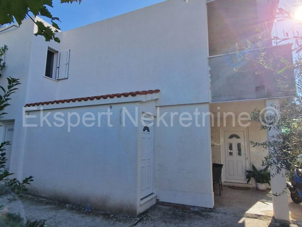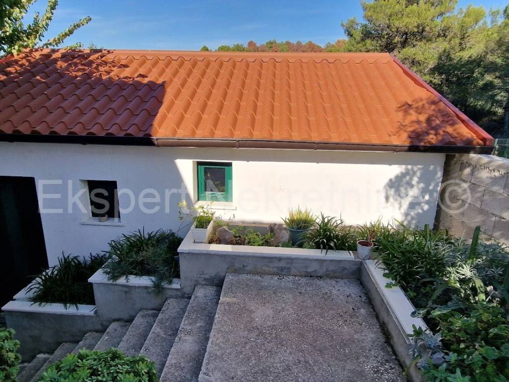 Čiovo, Okrug Gornji, above the main beach, smaller detached house 248 m2, with 2 apartments and an auxiliary building (chimney) on a plot of 648 m2. On the ground floor there is a finished two-bedroom apartment with a terrace, and two storage rooms, while on the first floor there is a large three-bedroom apartment with three large rooms, a bathroom, a toilet, a hallway, a large kitchen with a dining room and a large living room from which there is access to the a large terrace (30m2) with a view of Pore, from which the house is 400 m away. Next to the house there is also an auxiliary building (30m2) in the nature of a fireplace, a space for socializing, a storage room and a woodshed. The house has an internal staircase that leads to the roof terrace because it is possible to upgrade another floor. The house needs even less decoration. The yard is landscaped and planted with Mediterranean fruit trees and plants. The house also has several parking spaces. Asphalted access, connected to the city sewer system. Ideal for tourist rental because of the proximity to the beach and the sea. Peaceful location. Neat ownership.For more information, contact the agency.