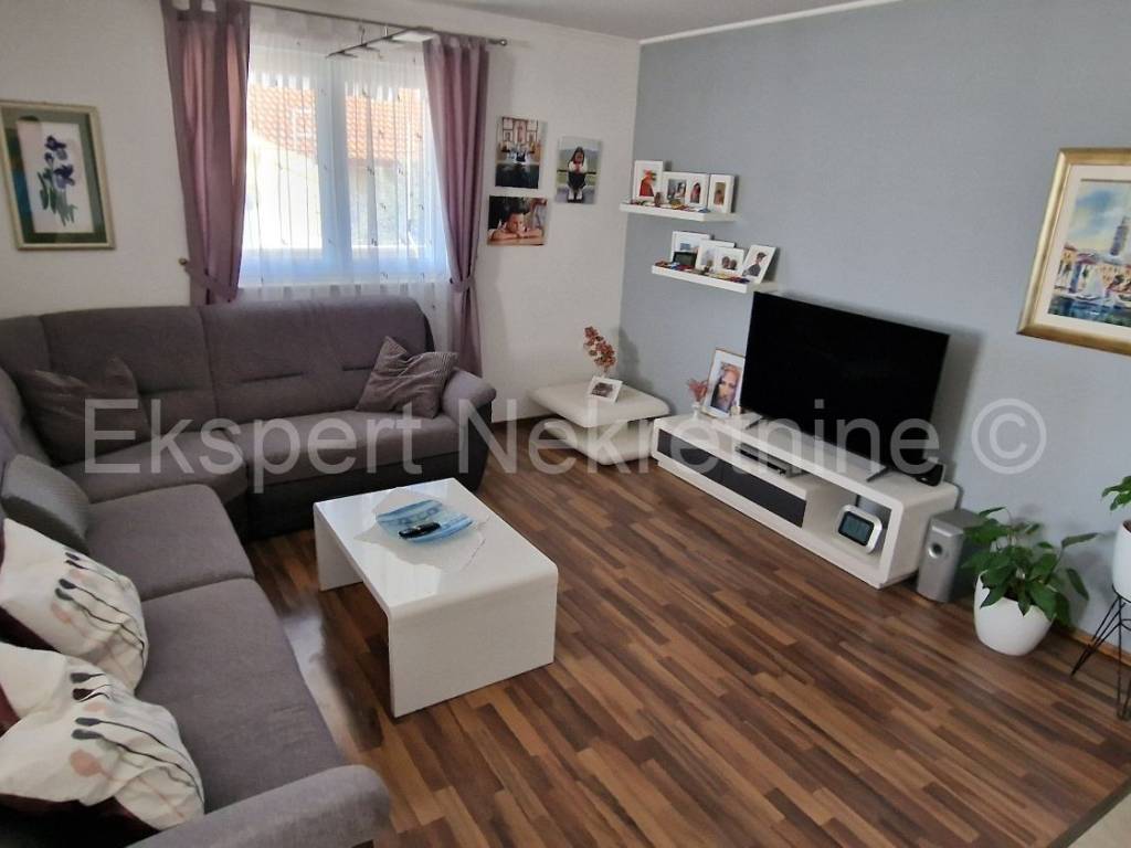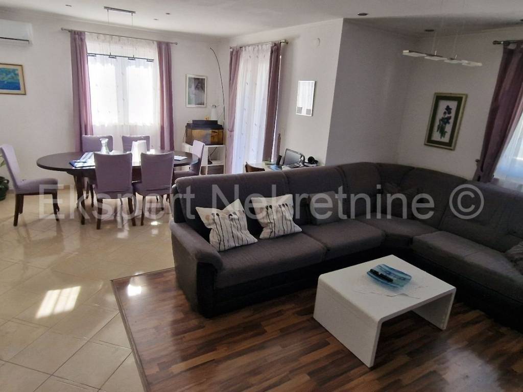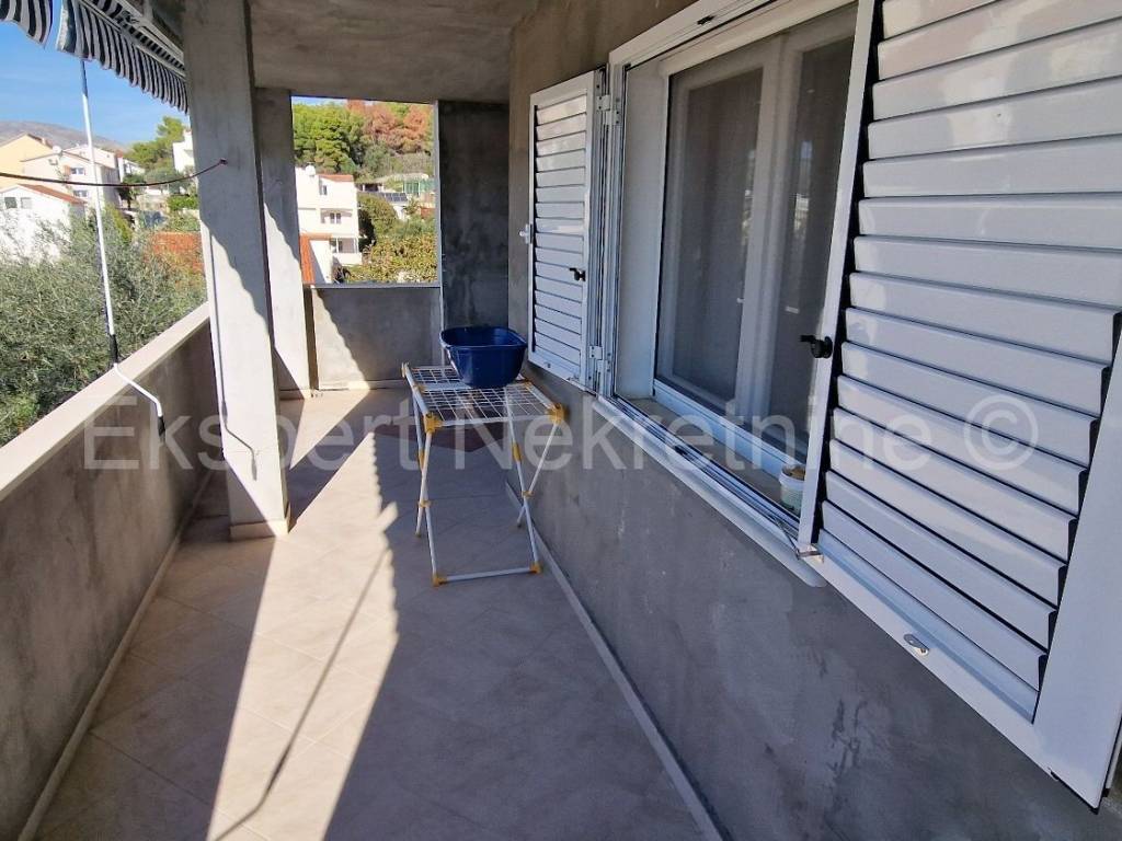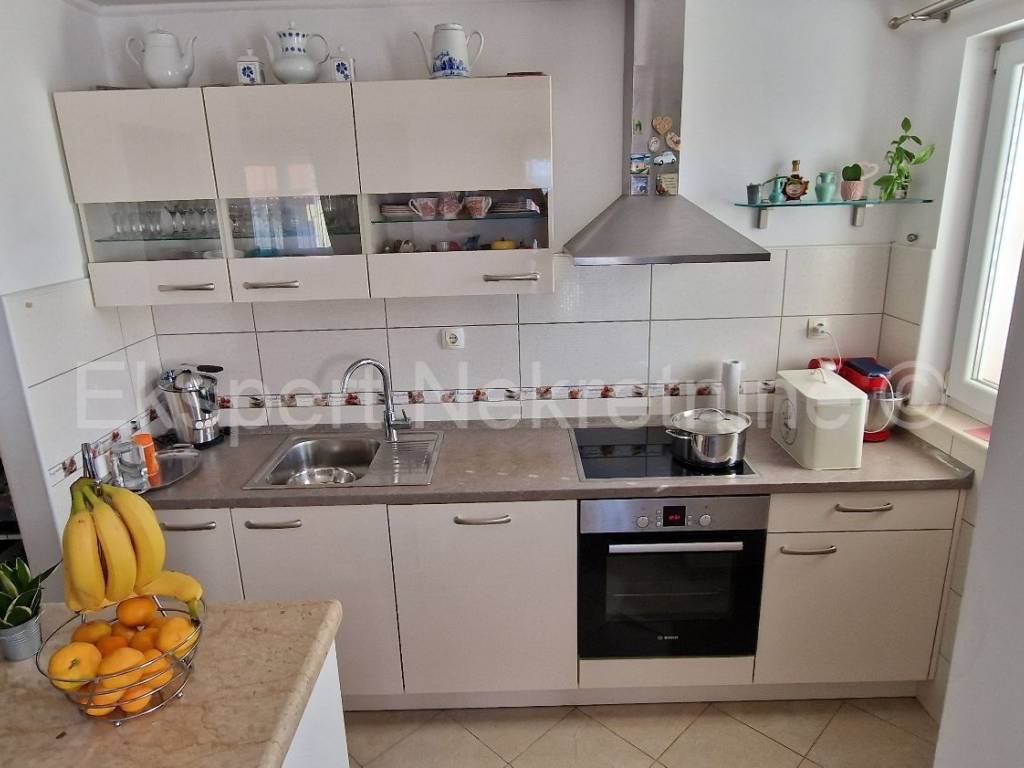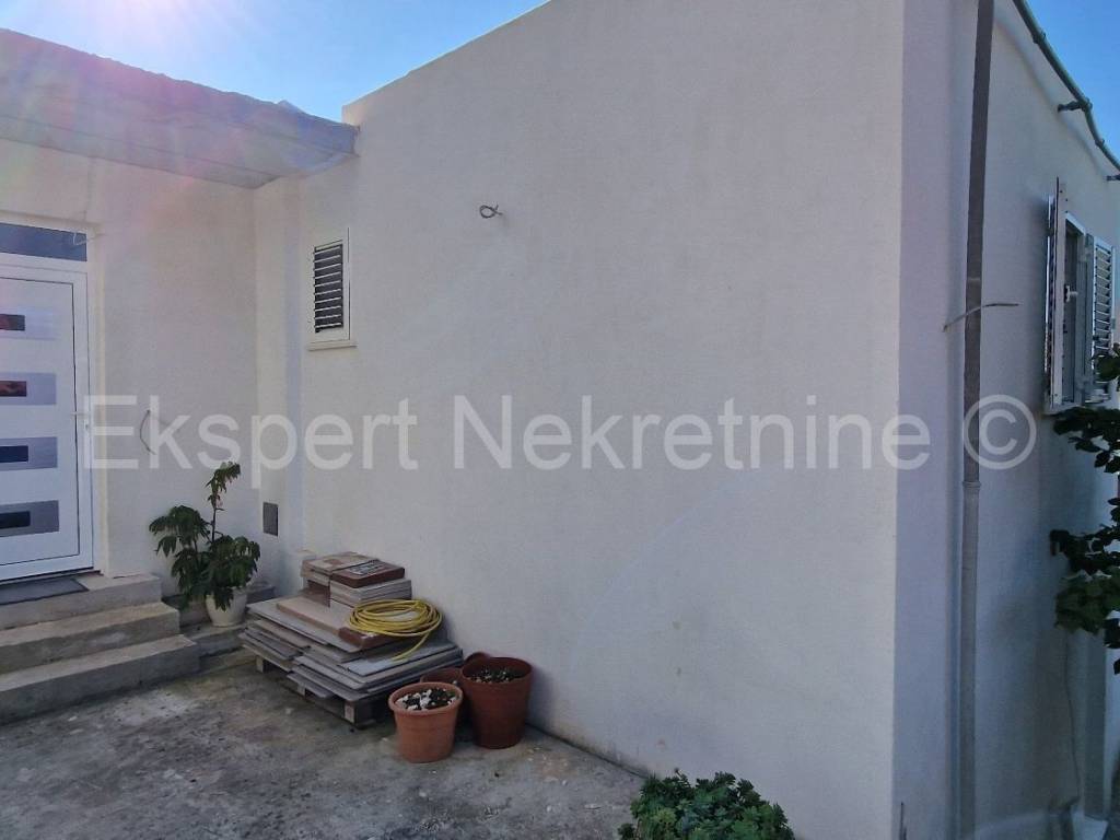 Čiovo, Okrug Gornji, above the main beach, smaller detached house 248 m2, with 2 apartments and an auxiliary building (chimney) on a plot of 648 m2. On the ground floor there is a finished two-bedroom apartment with a terrace, and two storage rooms, while on the first floor there is a large three-bedroom apartment with three large rooms, a bathroom, a toilet, a hallway, a large kitchen with a dining room and a large living room from which there is access to the a large terrace (30m2) with a view of Pore, from which the house is 400 m away. Next to the house there is also an auxiliary building (30m2) in the nature of a fireplace, a space for socializing, a storage room and a woodshed. The house has an internal staircase that leads to the roof terrace because it is possible to upgrade another floor. The house needs even less decoration. The yard is landscaped and planted with Mediterranean fruit trees and plants. The house also has several parking spaces. Asphalted access, connected to the city sewer system. Ideal for tourist rental because of the proximity to the beach and the sea. Peaceful location. Neat ownership.For more information, contact the agency.