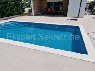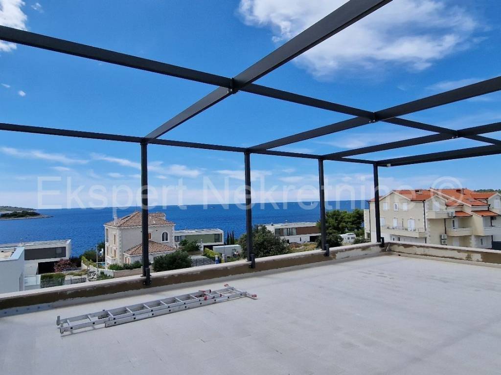 Рогозница, роскошная вилла площадью 350 м2 с бассейном всего в 120 м от моря и пляжа. Эта недавно построенная вилла расположена на участке площадью 639 м2, имеет ландшафтный сад с 5-6 парковочными местами и садом. открытый бассейн с солярием и большой террасой. На первом этаже находится отдельный гараж с ванной комнатой и машинным помещением, а также большая кухня со столовой и большой гостиной, ванная комната, кладовая и кладовая. большая терраса с бассейном. На втором этаже, куда ведет внутренняя лестница, расположены 4 большие спальни, две с отдельными ванными комнатами, еще одна ванная комната в коридоре для двух других спален и лоджия с прекрасным видом. На третьем этаже коридор, санузел, большое помещение (35м2), предназначенное для спортзала, но есть помещения для установки кухни, а также большая терраса 77 м2 с беседками, откуда открывается вид на море. море и острова.