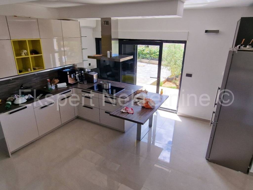 Вилла полностью оборудована новой мебелью и бытовой техникой. Качественное строительство. Полы с подогревом на первом этаже, кондиционеры в каждой комнате, столярные изделия из ПВХ, противомоскитные сетки, электрические жалюзи, качественная керамика, частично каменный фасад, солнечные батареи на втором этаже. крыша с центральным котлом и др. Дом расположен в тихом и спокойном месте, всего в 120 метрах от моря и близлежащего пляжа, где море кристально чистое. Аккуратная собственность.