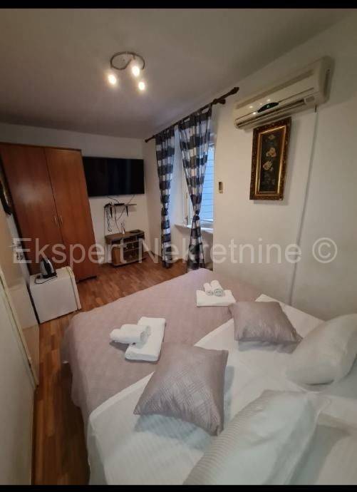 Split, Center, four-room apartment 96m2 located on the 2nd floor of the baroque palace, within the walls of Diocletian's palace. The entrance is a few steps from the Peristyle on the left and the Iron Gate on the right.It is in the pedestrian zone, surrounded by museums, galleries, numerous cultural sights, restaurants, bars...The property has new electricity and water installations, the floors have been renovated, the exterior joinery has been changed, and the kitchen and all rooms are air-conditioned.For many years, it has been working in renting out rooms to tourists, with minor changes you can get three apartments.Current condition: 3 rooms, 2 of which are with private bathroom and toilet, kitchen with dining room and 1 studio-apartment with a mini-kitchen.