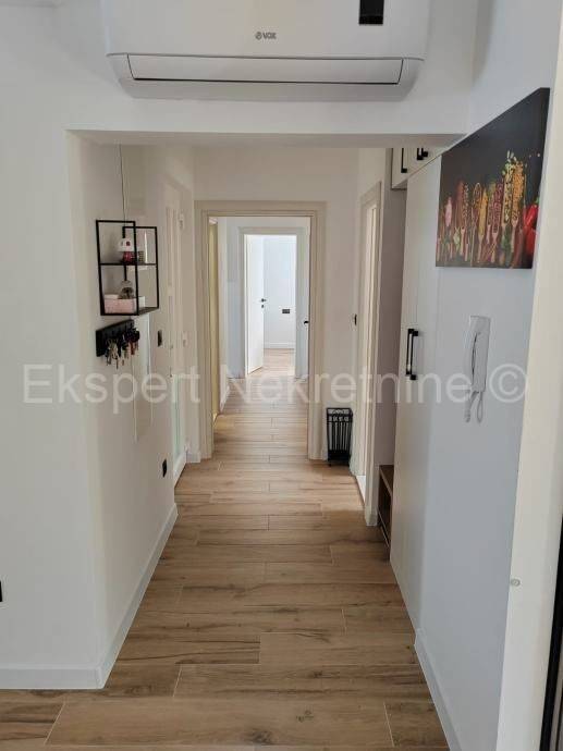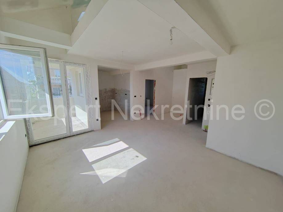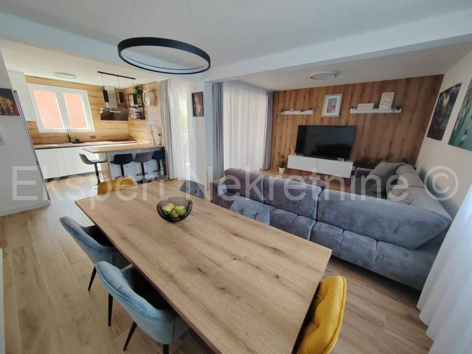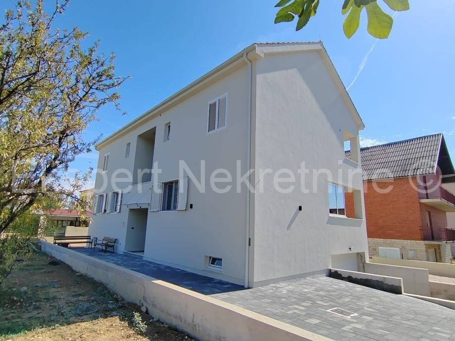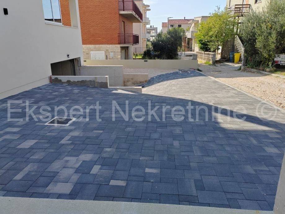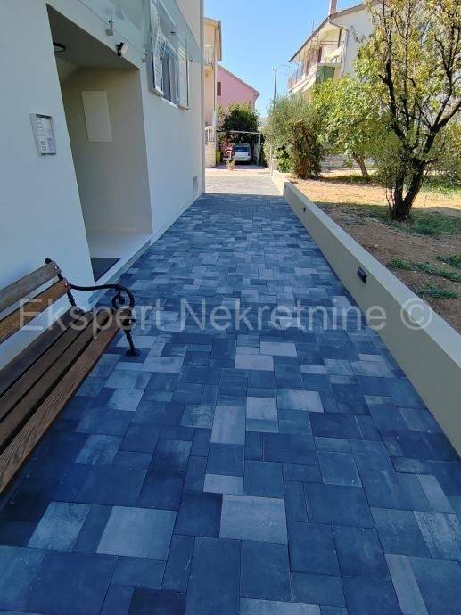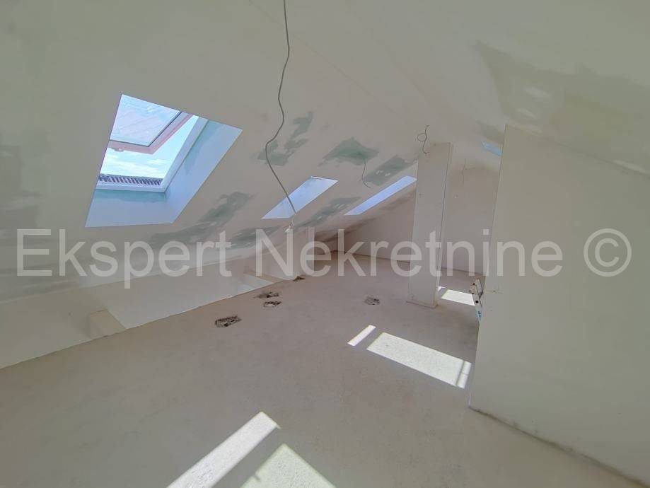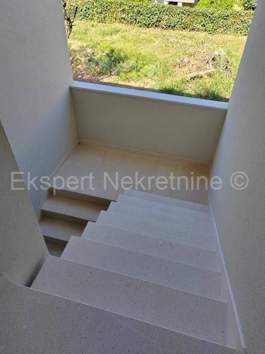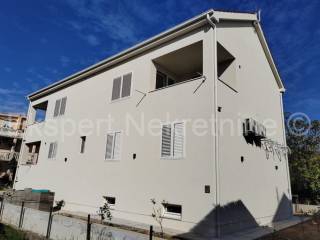Četverosoban stan u visokom prizemlju ide preko cijele etaže i ima netto 103 m2.Dva stana su na prvom katu te su dvoetažni,svaki po netto 83 m2,ostavljeni su u visokom roh-bau,tako da kupac može sudjelovati u odabiru vrata,pločica...Raspored i kvadrati po prostorijama više u nacrtima,koji su također u prilogu oglasa.Parcela ukupno površine 392m2,udaljena od mora cca 400 metara.