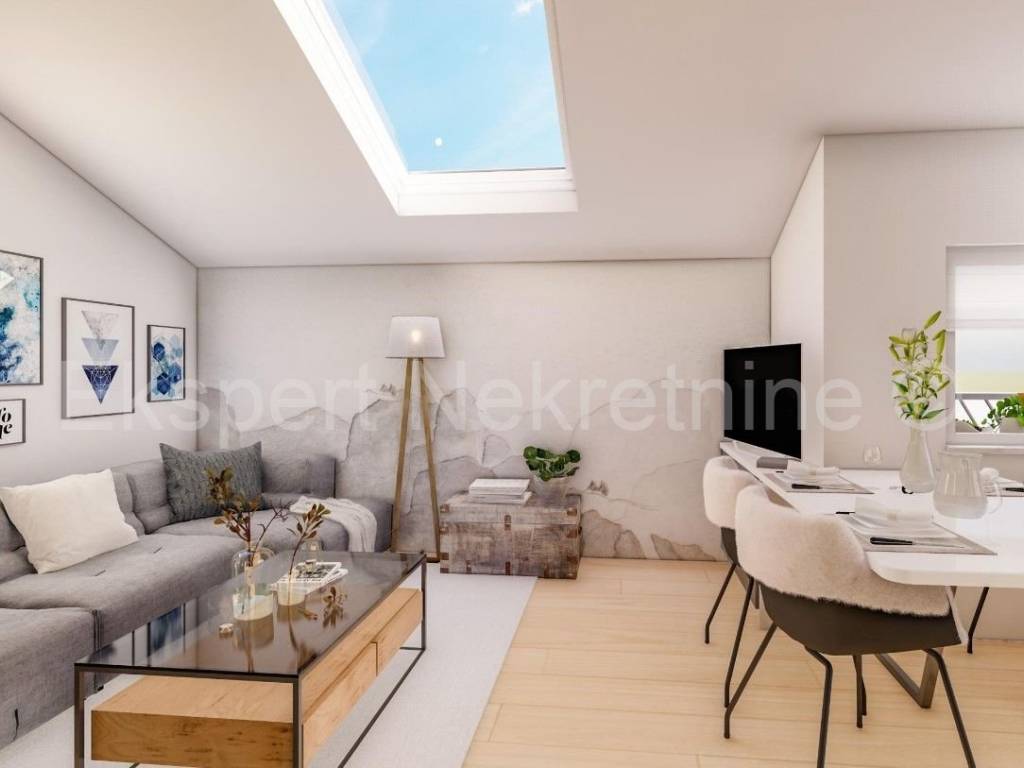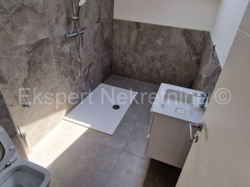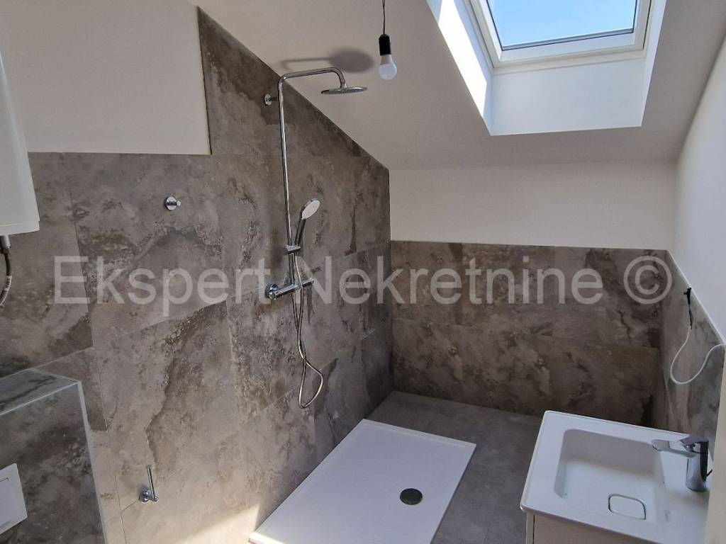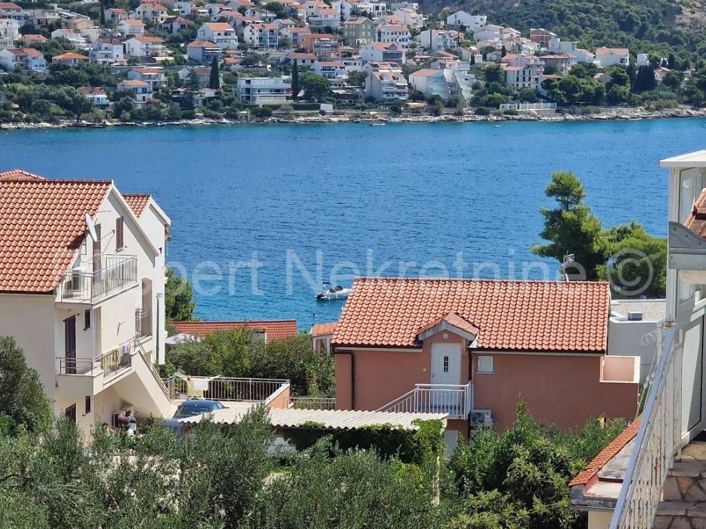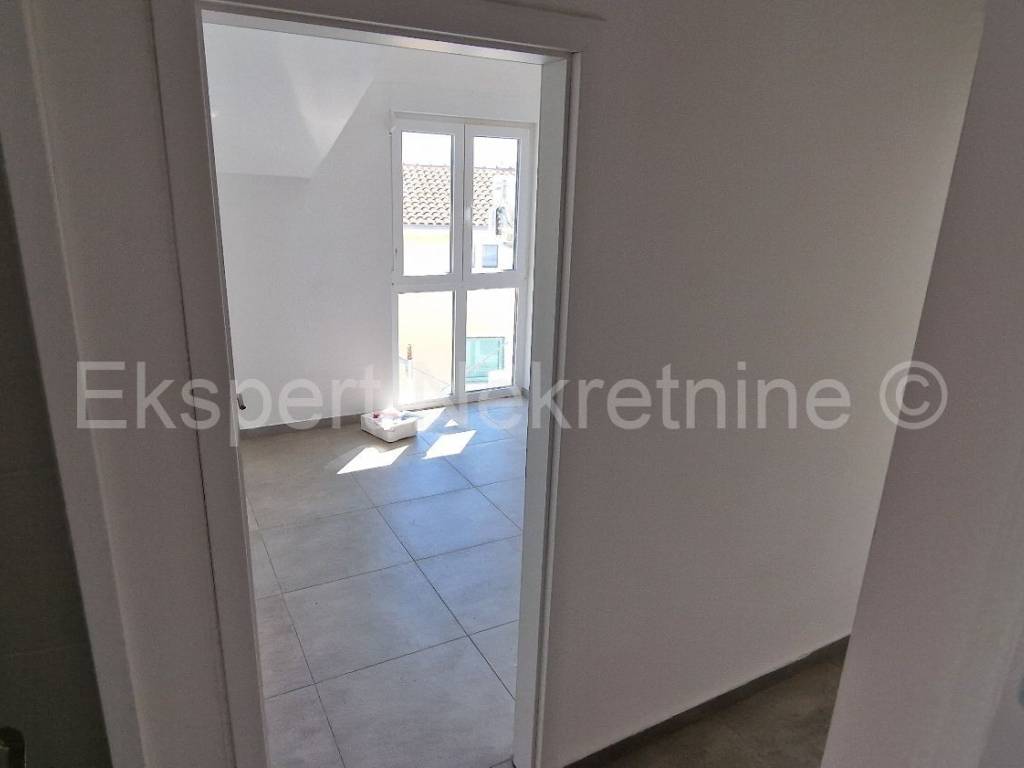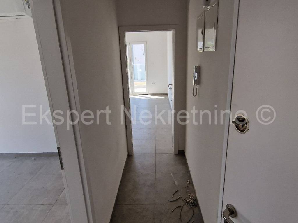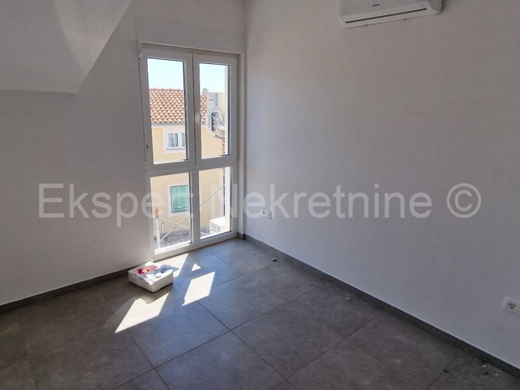 Čiovo,Okrug Gornji , small two-room apartment 54 m2 in a new building with a view of the sea in a building with 6 apartments. The apartment is located on the 2nd (last) floor of the building, and consists of one larger and one smaller bedroom, bathroom, hallway, kitchen with dining room and living room, large terrace with an open view of the sea. It is oriented south-east, and will be fully furnished and equipped with quality furniture and Bosch appliances. Quality construction (quality stone ceramics, air conditioning in every room, underfloor heating bathrooms, PVC joinery, radiant heating in the living room, etc.). The building is under construction, and the planned move-in is in the summer of 2024. Payment by construction stages. The apartment is only 200 m from the sea and the beach, and nearby there is also a shop, restaurants and cafes. Along with the apartment, it is necessary to buy one outdoor parking space, the price of which is 10,000 euros and is paid separately from the price of the apartment. Ownership and construction documentation are in order.