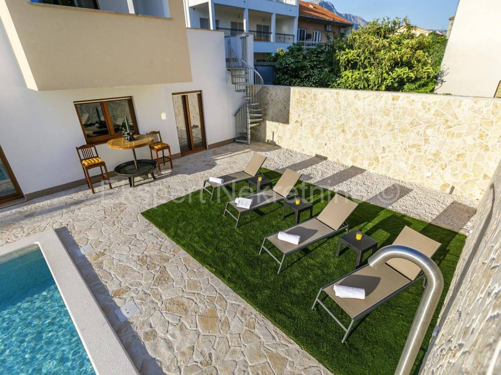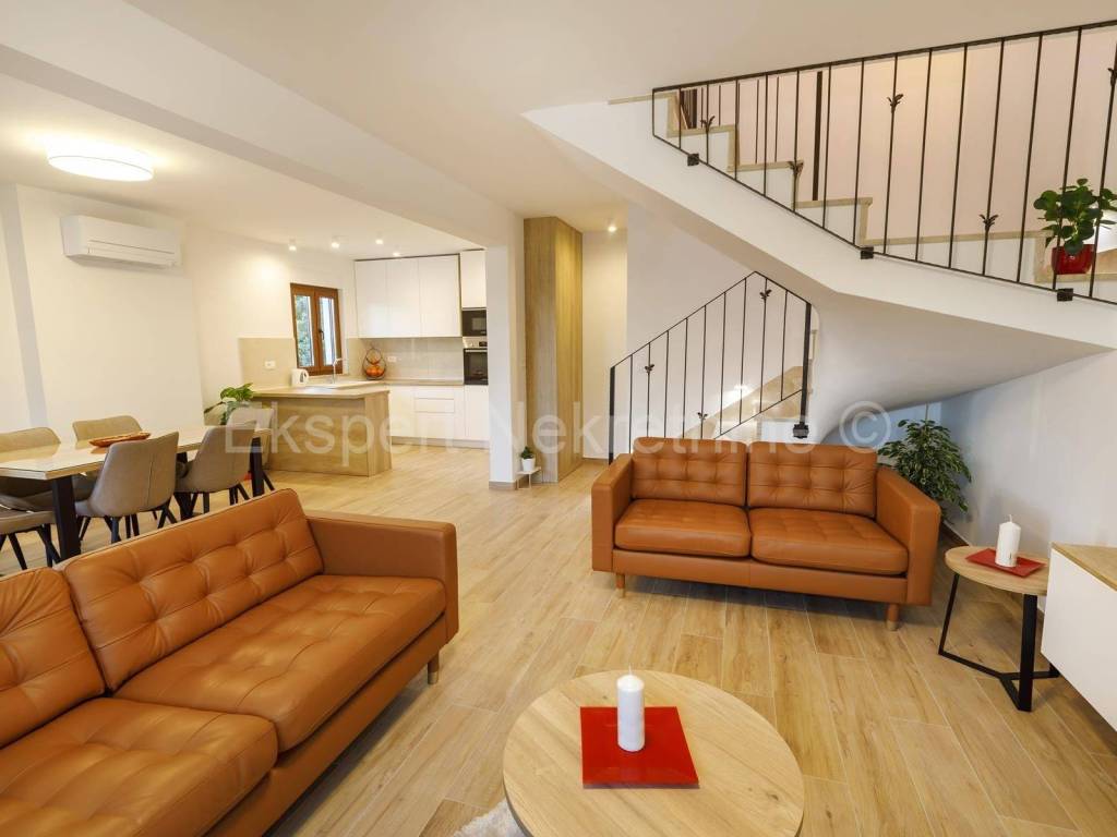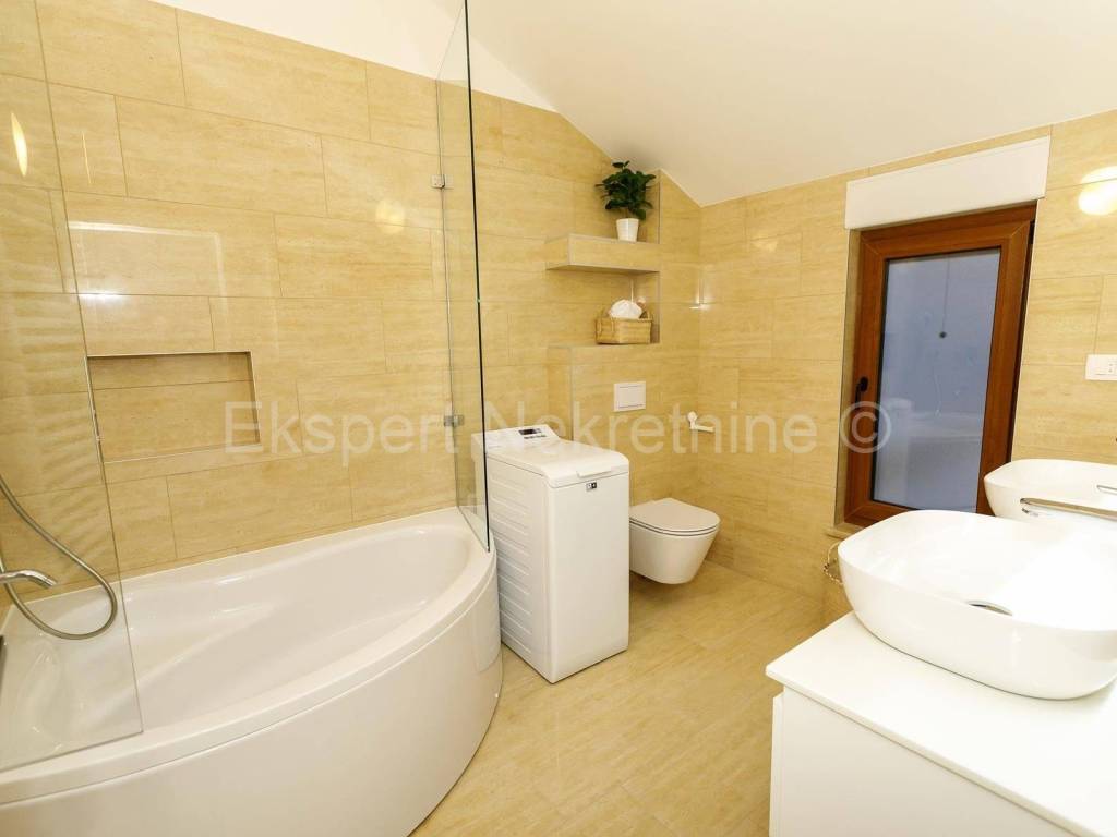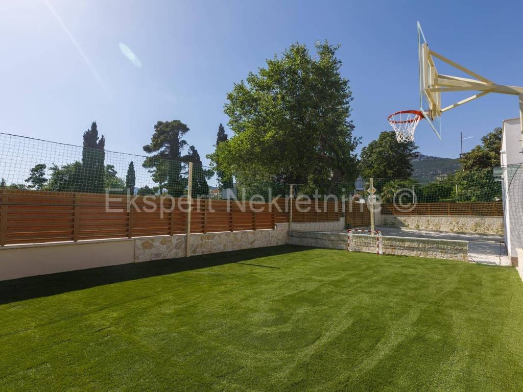 Мы занимаемся продажей виллы в Каштель Лукшич в тихом месте, недалеко от моря. Вилла состоит из трех жилых блоков, тренажерного зала, гаража, развлекательного зала у бассейна, детской площадки, парковки и зеленой зоны. На первом этаже западной части дома расположена трехкомнатная квартира с кухней, санузлом и большой гостиной с выходом к бассейну. На первом этаже восточной части дома находится тренажерный зал с ванной, туалетом и двойным душем, который также имеет выход к бассейну. В общей части первого этажа находится лестница и подлестница с удобствами (центральный водогрейный котел с дренажными трубами, главный шкаф для электричества, интернет и телефонная база). На первом этаже восточной части дома расположена большая гостиная с кухней, санузел, пристроенная и открытая терраса. На втором этаже расположены две комнаты со встроенными ванными комнатами, одна из них имеет балкон на южной стороне. Первый этаж западной части дома имеет ту же планировку, что и восточная часть дома. На втором этаже три комнаты с большой ванной комнатой и ванной, одна из комнат имеет выход на южный балкон. Во всех номерах установлены двуспальные кровати, за исключением одной комнаты на первом этаже виллы, в которой установлена двухъярусная кровать. Вилла отапливается полами с подогревом и кондиционером, даже гараж. Вся мебель изготовлена из дерева и изготовлена по индивидуальному заказу. На окнах установлены москитные сетки и магниты, которые регулируют работу кондиционера. Вилла оборудована высококачественной встроенной бытовой техникой белого цвета. Все 12 телевизоров марки Toshiba с диагональю 4355 дюймов со всеми функциями и IPTV в тренажерном зале и развлекательном зале. Забор изготовлен из дорогого цельного алюминия в цвете дерева и в соответствии с тюрьмами виллы. Раздвижные ворота, как и ворота гаража, работают по кодовой книге и на дистанционных устройствах, а также на ручное открывание. Стены и пол сада во всю высоту облицованы камнем Antiqo, который идеально вписывается в окружающую среду. На детской площадке искусственная трава. Бассейн также построен из самых дорогих материалов, купаться в нем можно зимой при комфортной температуре 27 градусов. Развлекательный салон с кухней, ванной комнатой, кондиционером, телевизором, а также большим столом на все 14 человек на вилле. Близость к морю, пляжу и всем остальным удобствам для проживания или аренды виллы.