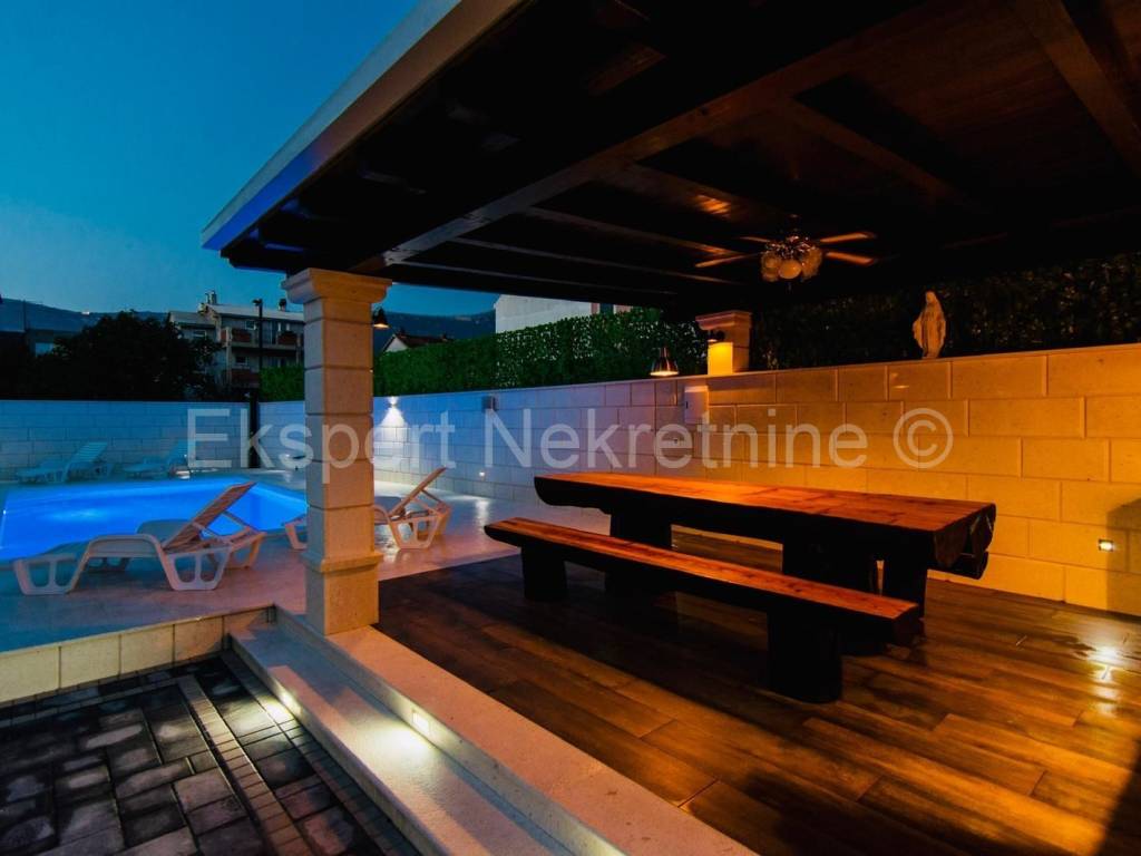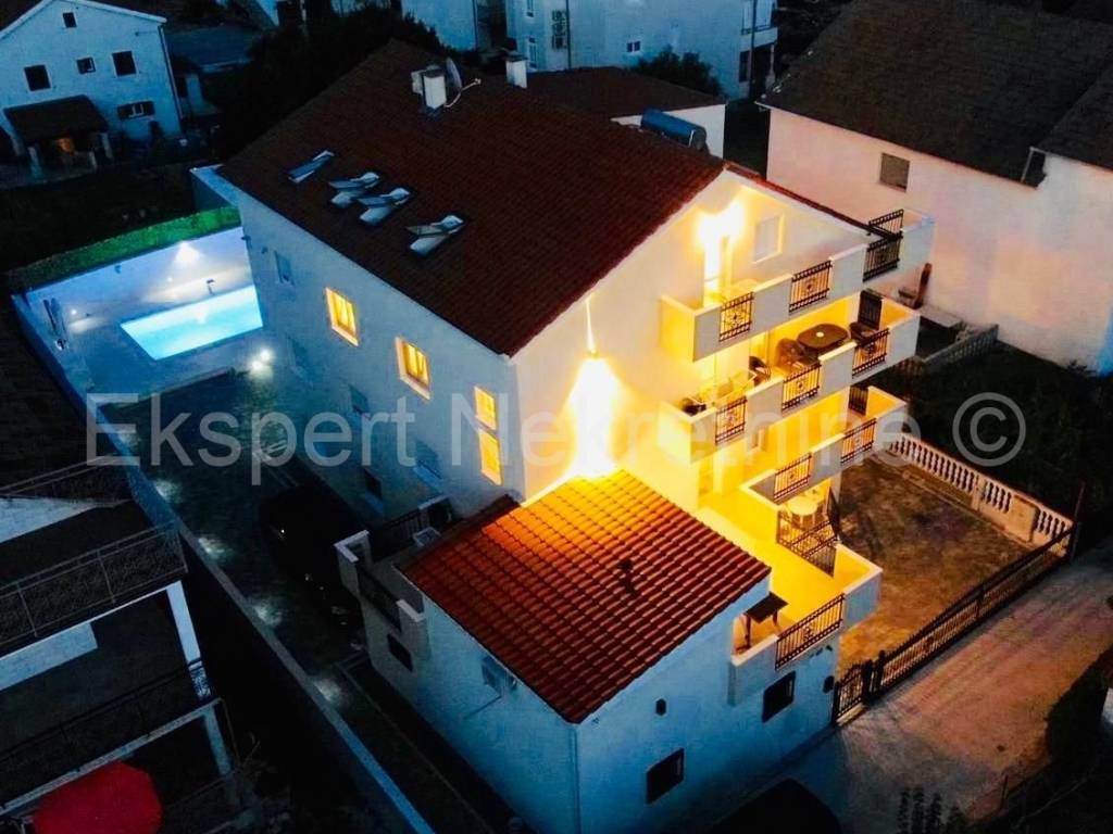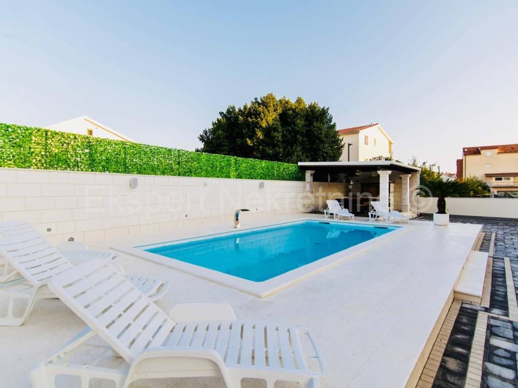 Продается недавно отремонтированная вилла с 4 звездами и сдана в аренду. Он состоит из подвала, первого этажа, трех этажей и сада с бассейном. На первом этаже виллы находится квартира площадью 125 м2, с 4 спальнями, двумя ванными комнатами, кухней со столовой, гостиной и балконом. Одинаковый план принадлежит первому и второму этажам. На верхнем этаже расположены три жилых дома; две квартиры с двумя спальнями, гостиной, кухней со столовой, ванной комнатой и балконом, а также квартира-студия с ванной комнатой. В доме также есть сауна в подвале с санузлом. Площадь бассейна 32м2, навес 22м2, барбекю, сад около 380м2 и 8 парковочных мест.