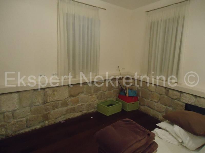 Продается пятикомнатная двухуровневая квартира в Сплите, центр. Квартира полностью отремонтирована, имеет 5 комнат, огромную кухню со столовой внизу и большую гостиную. Поскольку здание более старое, были залиты бетонные плиты, устроена каменная лестница, в квартире есть два мангала и камин. Все вымощено качественным камнем и украшено качественной деревянной конструкцией (террасой). У квартиры также есть парковка во дворе.