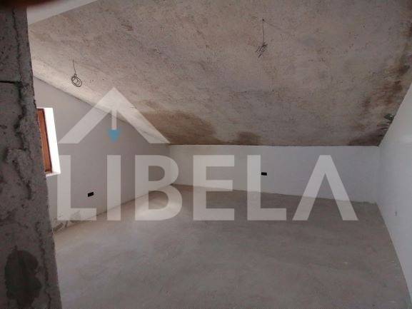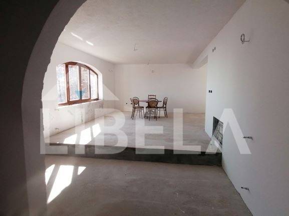 Na katu terasa, hodnik, kuhinja, dnevni boravak s kaminom, soba, velika kupaonica te unutarnje stepenište.