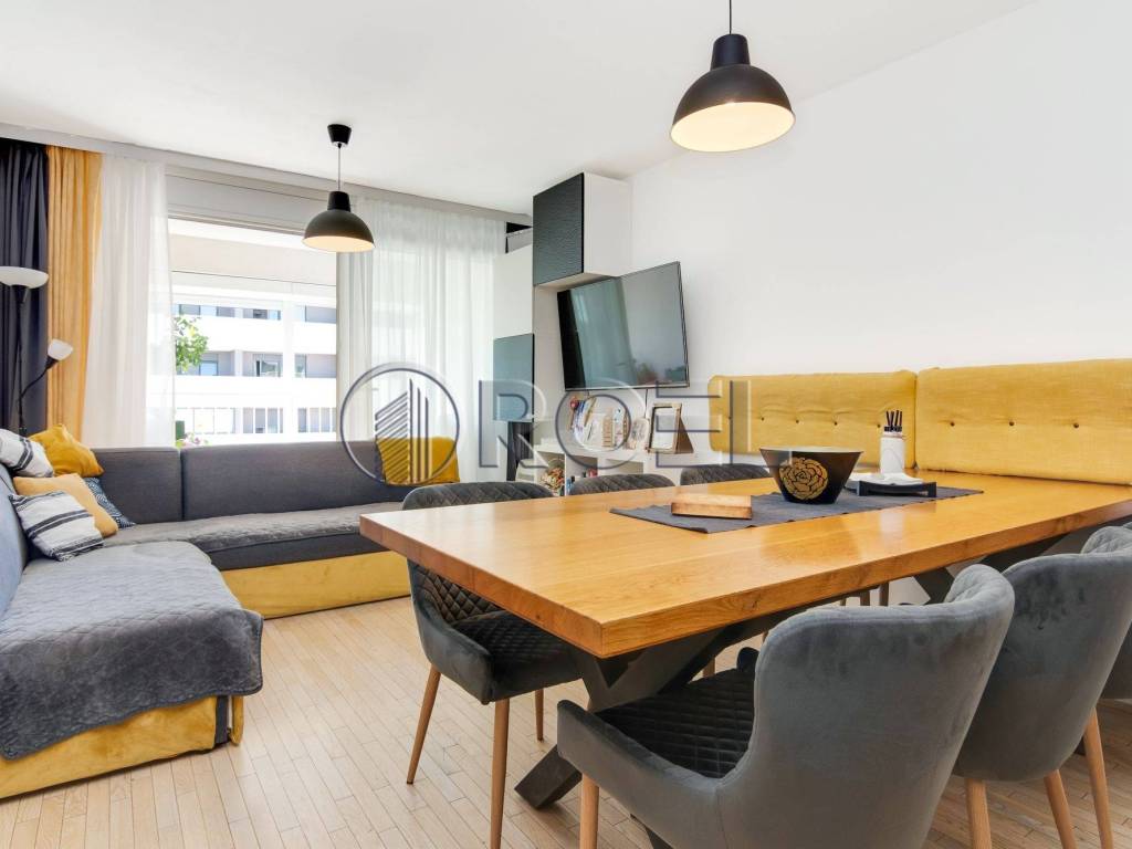 Novi Zagreb, Otok, three-bedroom apartment on the seventh floor consisting of an entrance, kitchen, bathroom, toilet, living room with dining room, two bedrooms, two balconies, storage room on -1, garage space (which has been converted into a garage) on -2, total net usable area of 84.63 m2The apartment is south-facing and has roller shutters on the balconies, heating-heat pump.It is located in an excellently connected location near kindergartens, schools, health center, shops and public transport. Avenue Mall shopping center and Bundek park are a few minutes away. Fast connection to the city center, airport and highway.Other information on request.