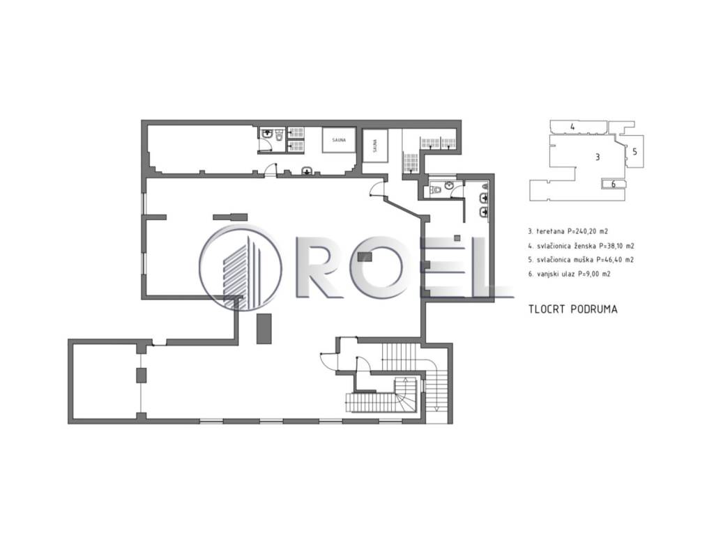 U prizemlju se nalazi prostor površine 72,03 m koji se sastoji od radnog dijela, sanitarnog čvora i reprezentativnog ulaznog prostora koji je povezan s donjom etažom. Donja etaža obuhvaća 333,07 m i sastoji se od velike open space prostorije te dodatnih prostorija sa sanitarnim čvorovima, trenutno uređenih kao svlačionice, što omogućuje razne mogućnosti budućem korisniku.