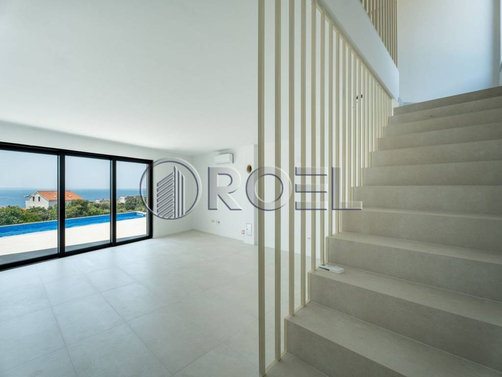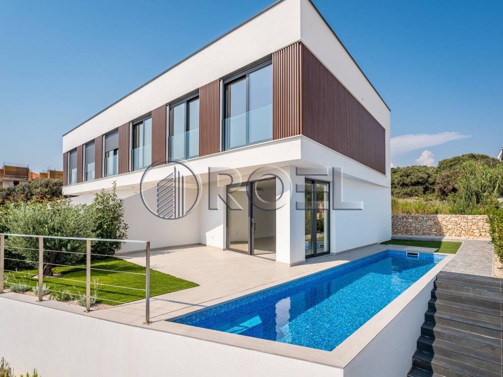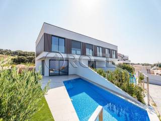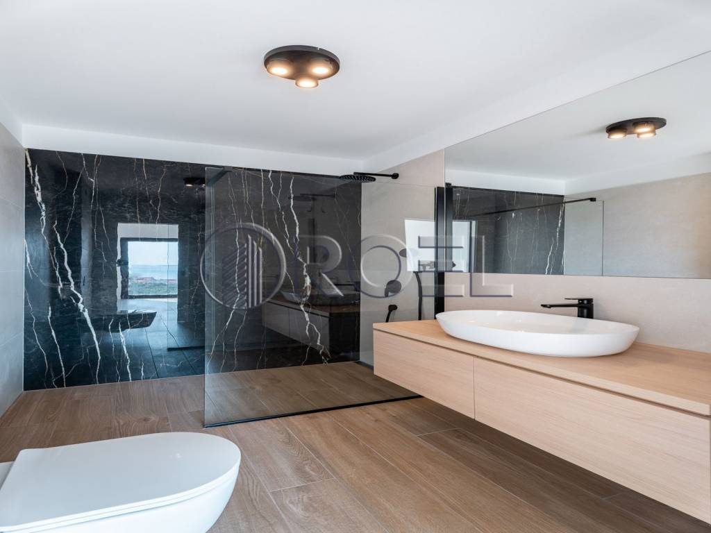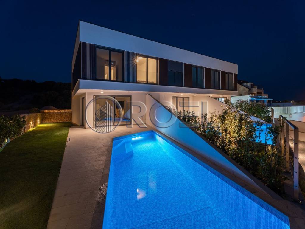 A beautiful project for sale in a great location in Mandre on the island of Pag. It consists of 3 parts/houses in a row. Each building is two-storey and has its own swimming pool. Every part of this beautiful facility is breathtaking. The investor paid attention to every detail and wanted to make a building that would have the comfort of an apartment and the comfort of a house. The production was guided by the highest quality standards. A 20 cm thermal façade was installed, three-layer aluminum joinery with solar control technology (four seasons), each room is air-conditioned through a central unit on the roof, and electric underfloor heating is installed on the floor. Top quality Italian ceramics, Villeroy & Boch sanitary ware, Hans Grohe bathroom equipment are just some of the quality equipment that is installed. Whichever part of the villa you are on, every room offers a beautiful open view of the sea, and Mandre is known for the most beautiful sunset. The villa is divided into two floors, of which 101.76 m2 is enclosed space. The outdoor area consists of a beautifully landscaped garden with a sunbathing area of 100 m2 and an outdoor pool of 18.75 m2.