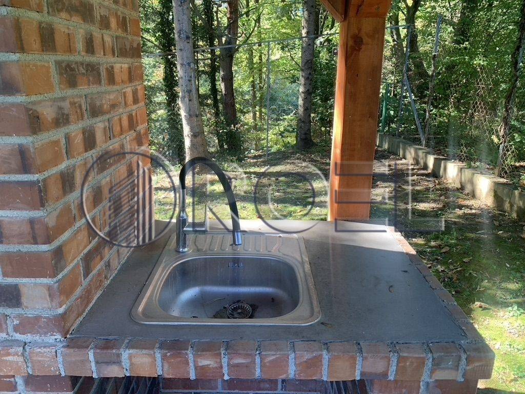 Okućnica je savršeno uređena s bogatim zelenilom, automatskim navodnjavanjem i sadržajima za uživanje:Bazen s bijelim bračkim kamenom i sunčalištemSjenica s roštiljem i priključcima za vodu i struju (30+ m)Dječje igralište unutar ograđenog dvorištaGaraža i dodatna parkirna mjesta (mogućnost parkiranja do 5 automobila)