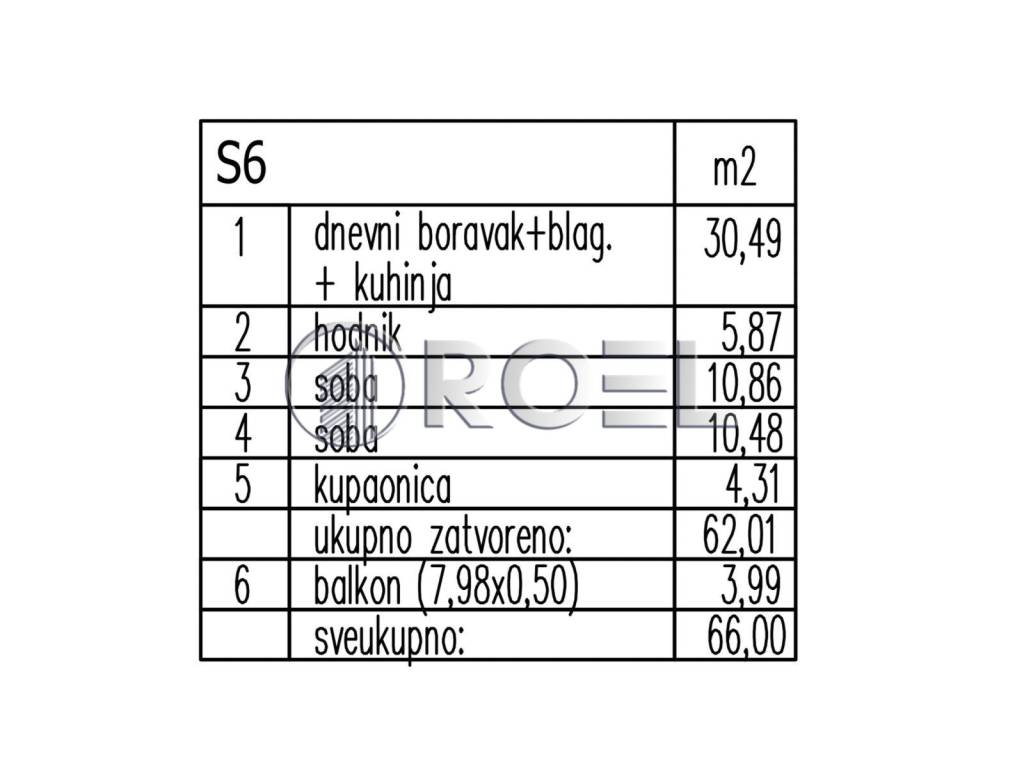 Three-bedroom apartment with a total gross floor area of 66.00 m2, located in Stenjevac (south). It is located on the second floor of a 4-story building. It consists of an entrance hall, two bedrooms, a bathroom with toilet, a kitchen with a dining area and a living room, and a balcony. The apartment has a storage room and one parking space in the garage.