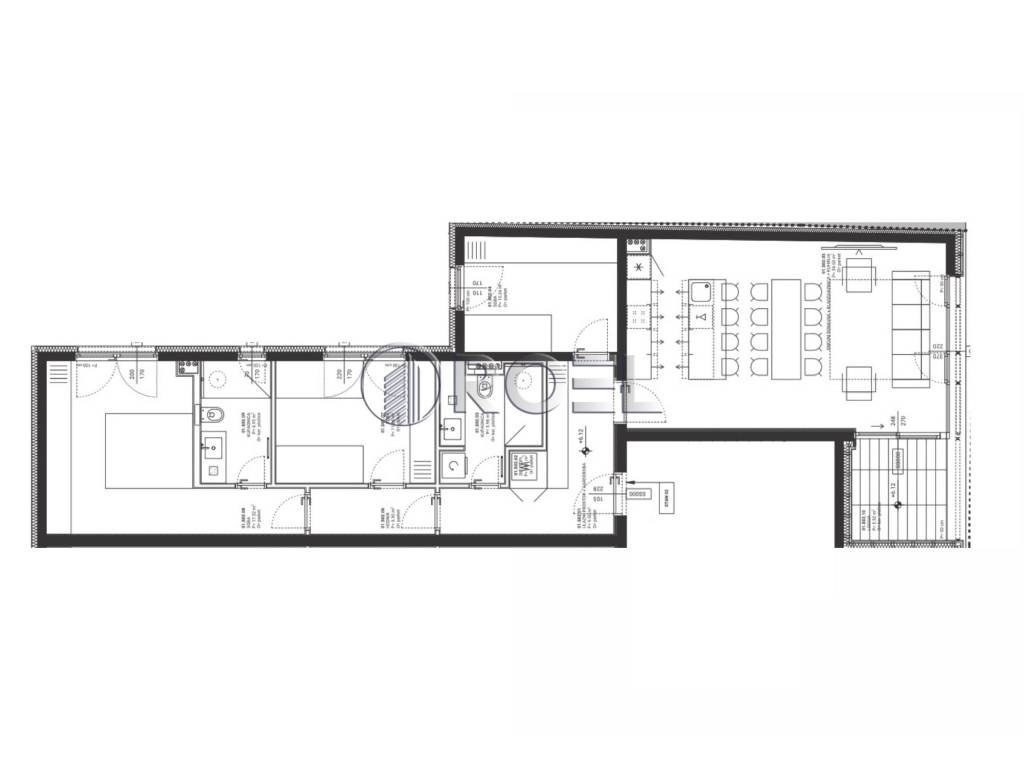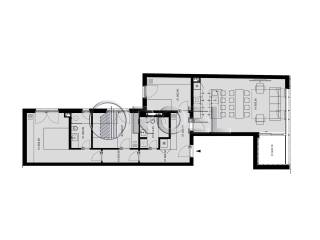 The apartment is equipped with air conditioning, security doors, an intercom, an alarm system, and external aluminum joinery with triple glazing and electric blinds. The flooring is covered with parquet and ceramics, chosen by the buyer. The space is equipped with a ceiling heating and cooling system via a heat pump. The apartment is oriented towards three sides (east, south, west).