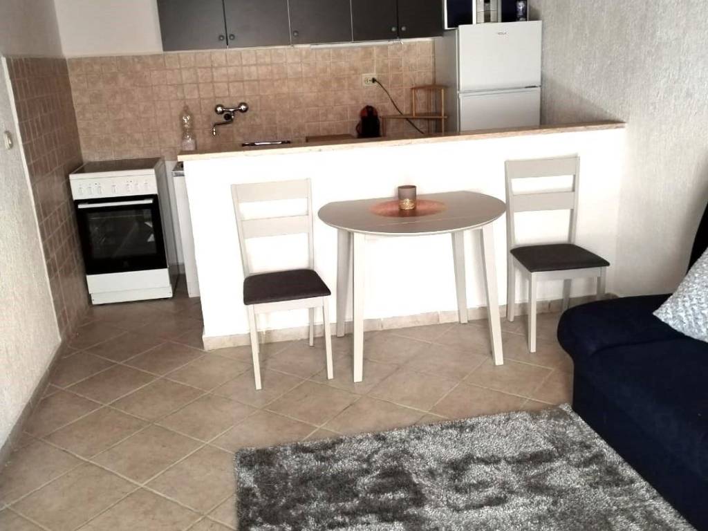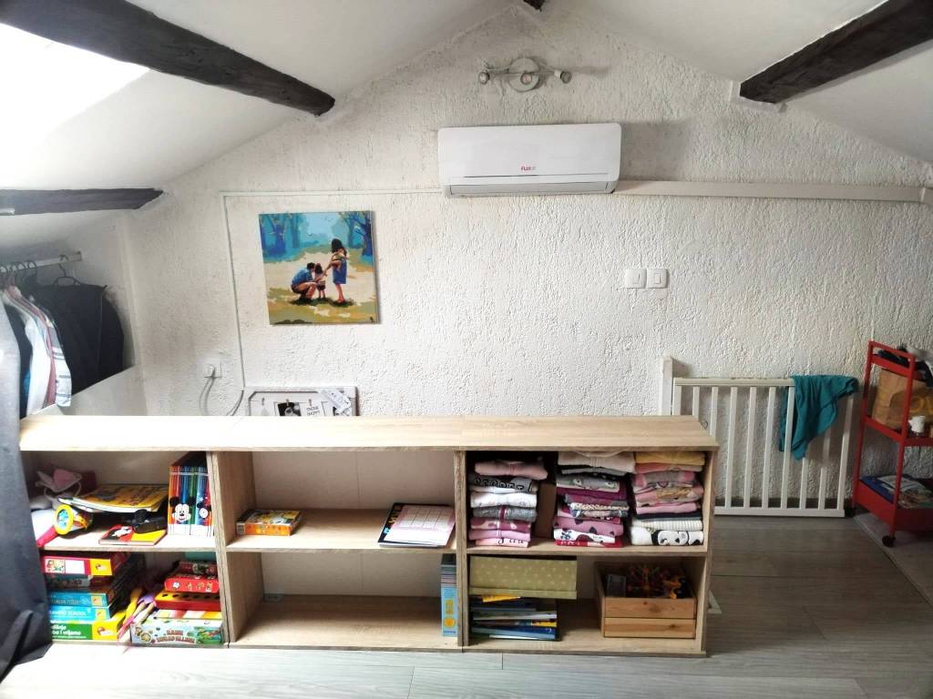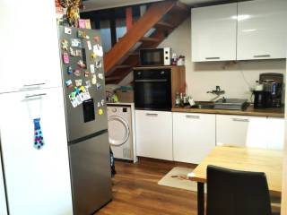 A duplex apartment spread over the first floor and attic. It consists of a kitchen with a dining room and living room, a bathroom, a bedroom and a terrace perfect for enjoying warm evenings.