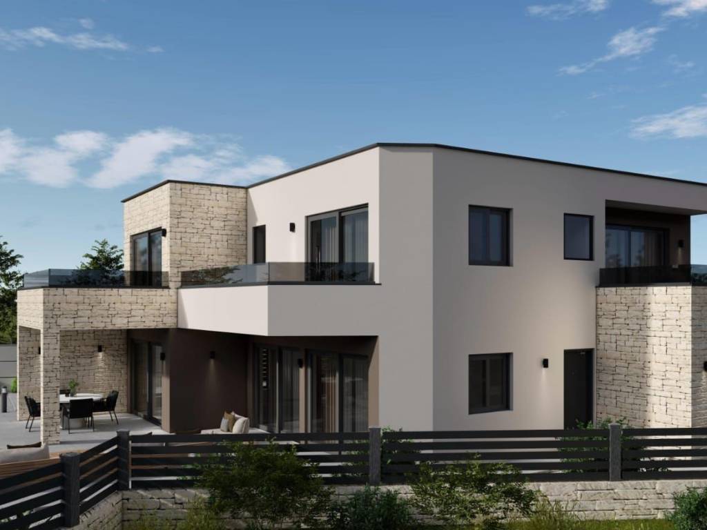 Prodaje se moderna vila sa bazenom u izgradnji kod Muntrilja sa otvorenim pogledom na more.