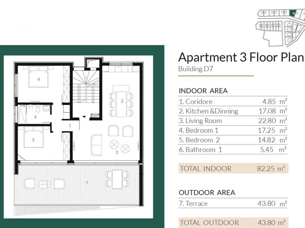 A luxurious apartment for sale in Lovrečica, only 150 m from the beach and the sea. The apartment is located on the first floor of a modern building with only 4 residential units. The area of the apartment is 82.25 m2 and 42.64 m2 of terrace and consists of a hallway, living room with kitchen and dining room, 2 bedrooms, bathroom and a huge terrace. The apartment is built with top quality materials, has underfloor heating with a heat pump, inverter air conditioners.