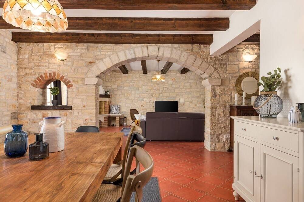 U srcu Istre prodaje se rustikalno uređena vila sa bazenom koja će oduševit sa svojim prekrasno uređenim interijerom i eksterijerom . Na zemljištu od čak 2347 m2 smjestila se ova samostojećavila od 270 m2. Prizemlje vile sastoji se s od predsoblja kuhinjasa blagovaonicom i dnevnog boravka , radne sobe , 2 spavaće sobe sa zasebnim kupatilima , ostava, praonica, kotlovnica .Stepenicama se penjemo na kat gdje se nalaze još 2 spavaće sobe, 2 kupaonice i 2 natkrivene terase. Vila se grije i hladi pomoću podnog grijanja i fan coilera. U uređenom dvorištu je smješten i prostran bazen od 74 m2 te ljetna kuhinja