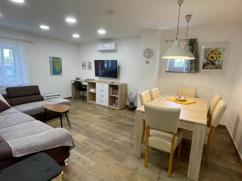 Tradicionalna vila u istarskom stilu sa bazenom nalazi se u prekrasnom malom mjestu u blizini Poreča. Najbliža plaža i centar Poreča udaljeni su oko 4 km .Vila se sastoji od četiri spavaće sobe, tri kupaonice, Wc a , dnevnog boravka i blagovaonica te vrlo moderna, potpuno opremljena kuhinje.U dvorištu vile nalazi se bazen te vanjska kuhinja i dječje igralište.