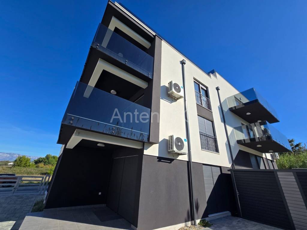 PRIVLAKA - dvosoban apartman u prizemlju apartmanske zgrade sa šest stambenih jedinica, 50 m do mora. Apartman se sastoji od kuhinje, blagavaonice, dnevnog boravka, dvije spavaće sobe, dvije kupaonice i natkrivene terase. Apartmanu pripada vrt površine 108 m2 i dva parkirna mjesta. Tlocrtna površina apartmana je 75,55 m2.