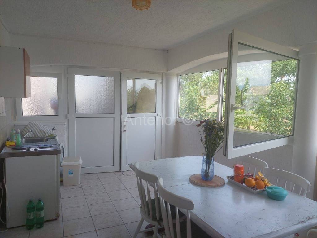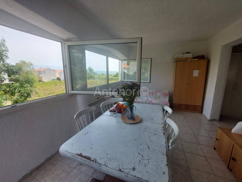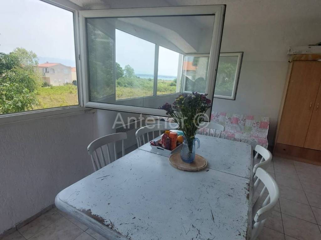 NINSKE VODICE - Apartman 49,63 m2. Apartman se nalazi na prvom katu zgrade. Sastoji se od dvije spavaće sobe, kupaonice, hodnika, dnevnog boravka, kuhinje i terase. Apartmn se nalazi 650 m od mora i Kraljičine plaže. Do centra Nina je udaljenost 2,5 km. Apartman ima pogled na more.