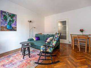Очень красивая и уютная однокомнатная квартира площадью 40 м расположена на втором этаже дома, построенного в 1940 году. В земельной книге указана площадь 35,8 м, однако благодаря удачной перепланировке получено несколько дополнительных квадратных метров.