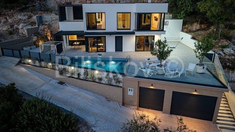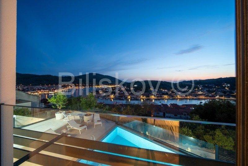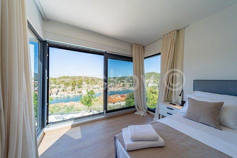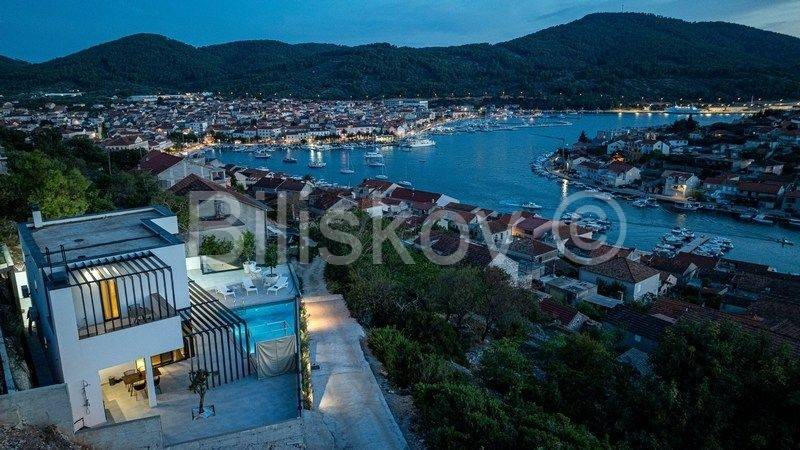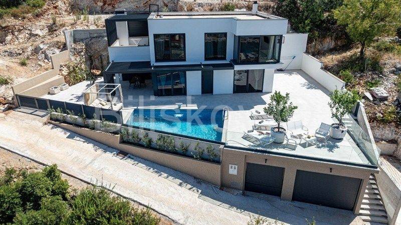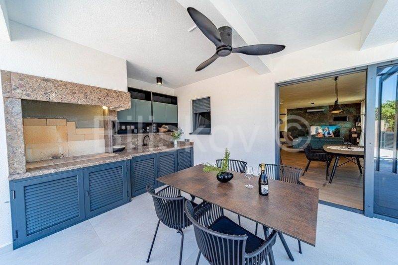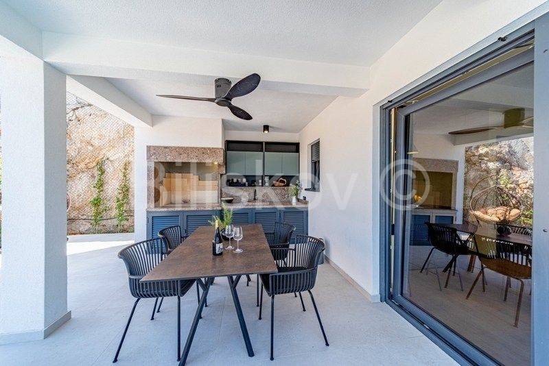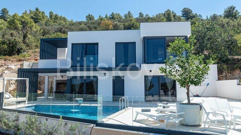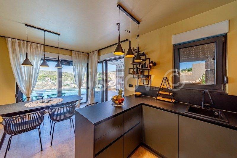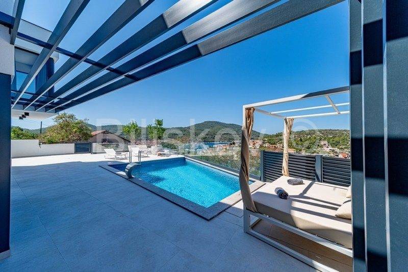 Korčula, Vela Luka, modern villa in a quiet location, a few minutes' walk from the center and all facilities. The living area of the villa on two floors is 120 m2, covered terrace with barbecue 25 m2, terrace from the western bedroom 14 m2, outdoor terrace with swimming pool 200 m2, area of the plot is 770 m2.
