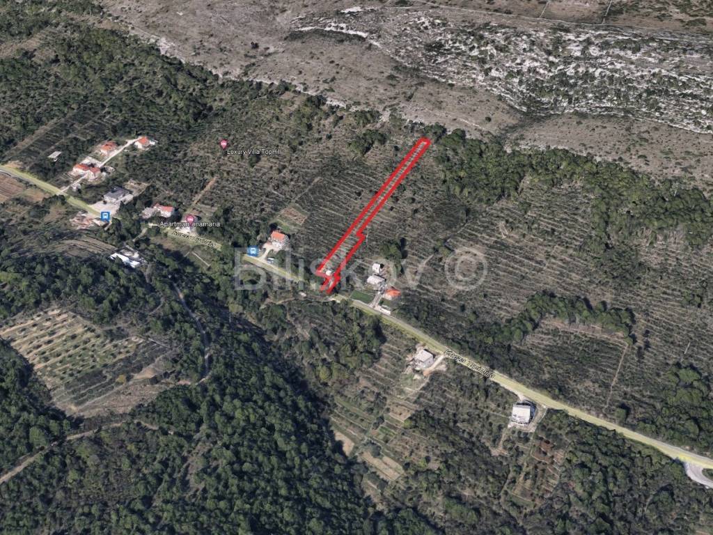 Započeta gradnja prema moru uz asfaltnu cestu, kolni prilaz sa dozvolom, građevinska dozvola i projekt za gradnju kuće Pr+I+II, sa plačenim svim doprinosima, elaborat iskolčenja ovjeren, prijavljena gradnja upravnom tijelu, solarna otočna struja 220V 5KW u funkciji, prirodni izvor vode na parceli u uporabi, optički kabel uz parcelu, gradnja moguća odmah, a za drugu parcelu moguće ishoditi dozvolu, izgrađen manji useljiv objekt.