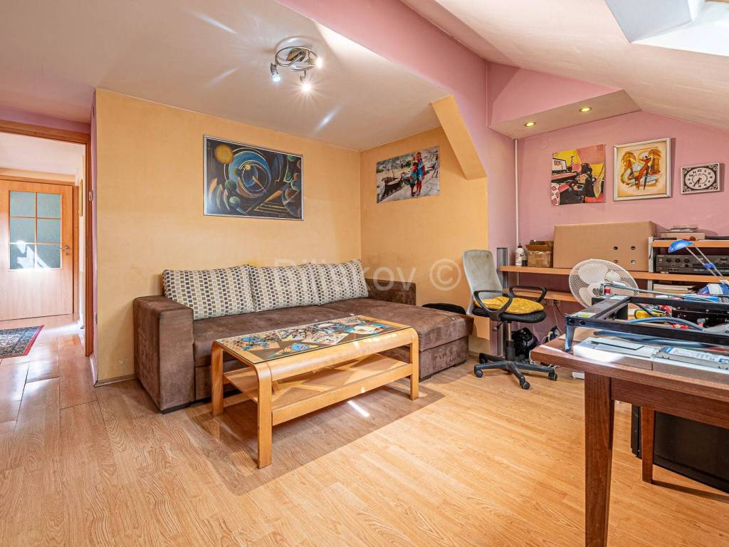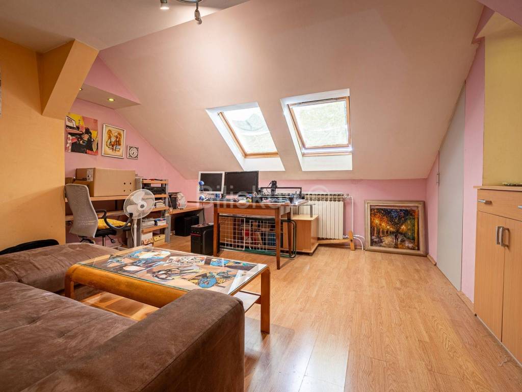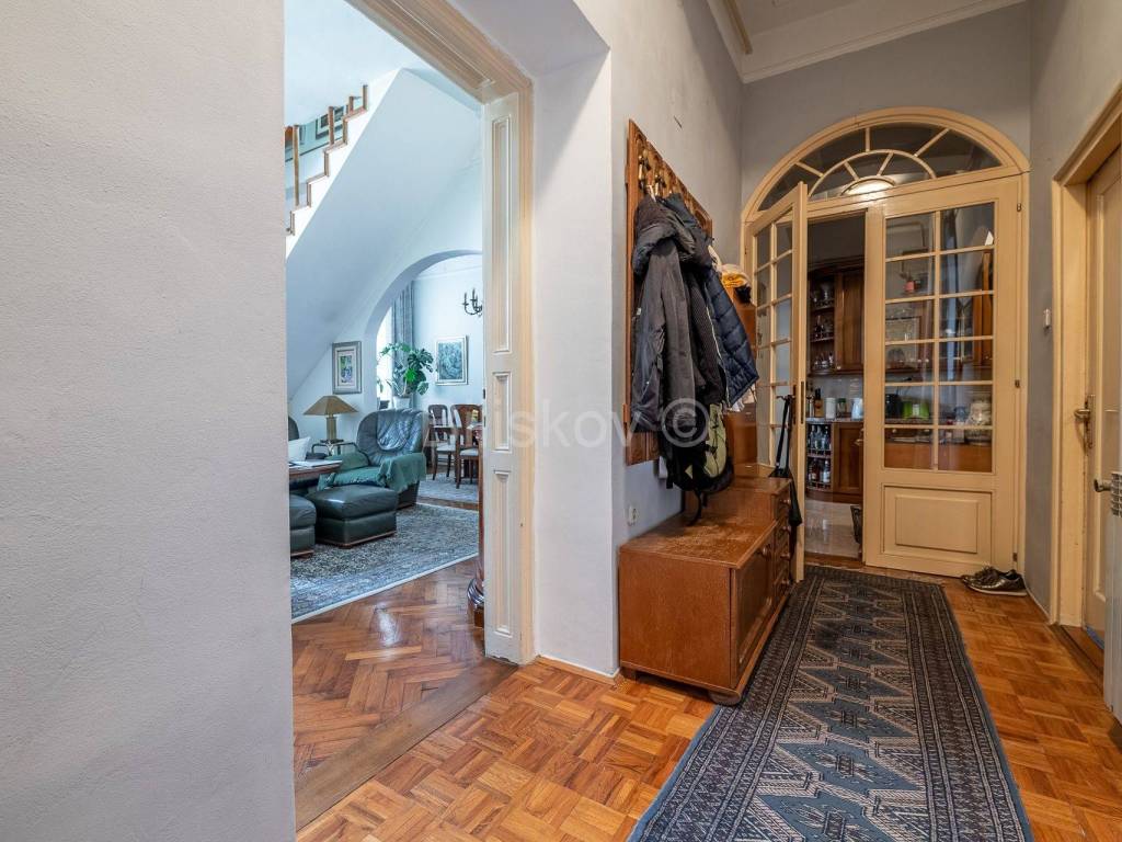 В квартире также имеется чердачное помещение площадью 48 м2 (в настоящее время служащее галереей), на которое можно подняться по лестнице из коридора и которое не входит в полезную площадь квартиры.