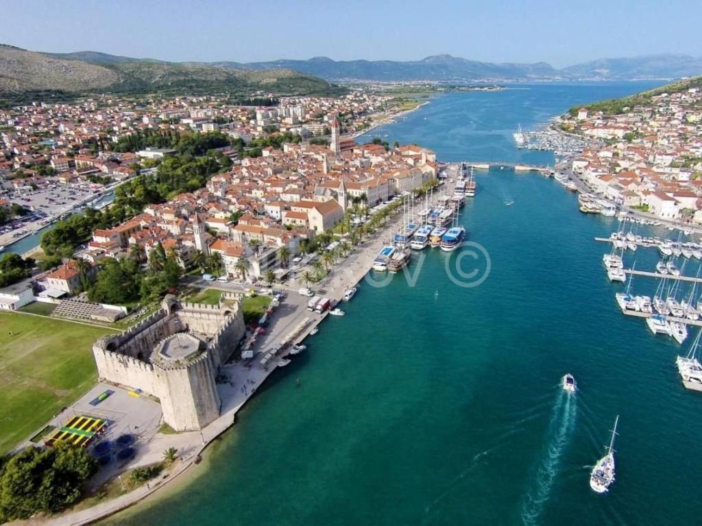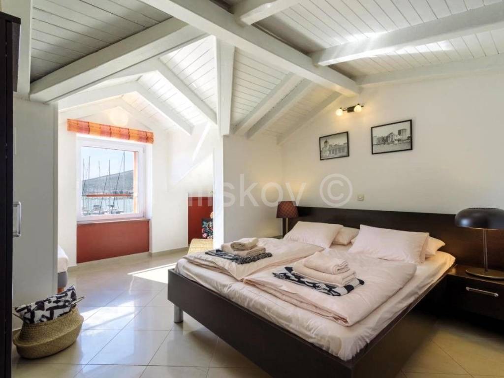Smještena u prvom redu uz more, ova kuća se proteže na prizemlje i tri kata, nudeći jedinstven pogled na UNESCO centar Trogira i trogirsku rivu. Prizemlje je rezervirano za poslovni prostor, idealno za one koji žele raditi s pogledom na more ili koji planiraju razviti vlastiti posao u turističkom okruženju.