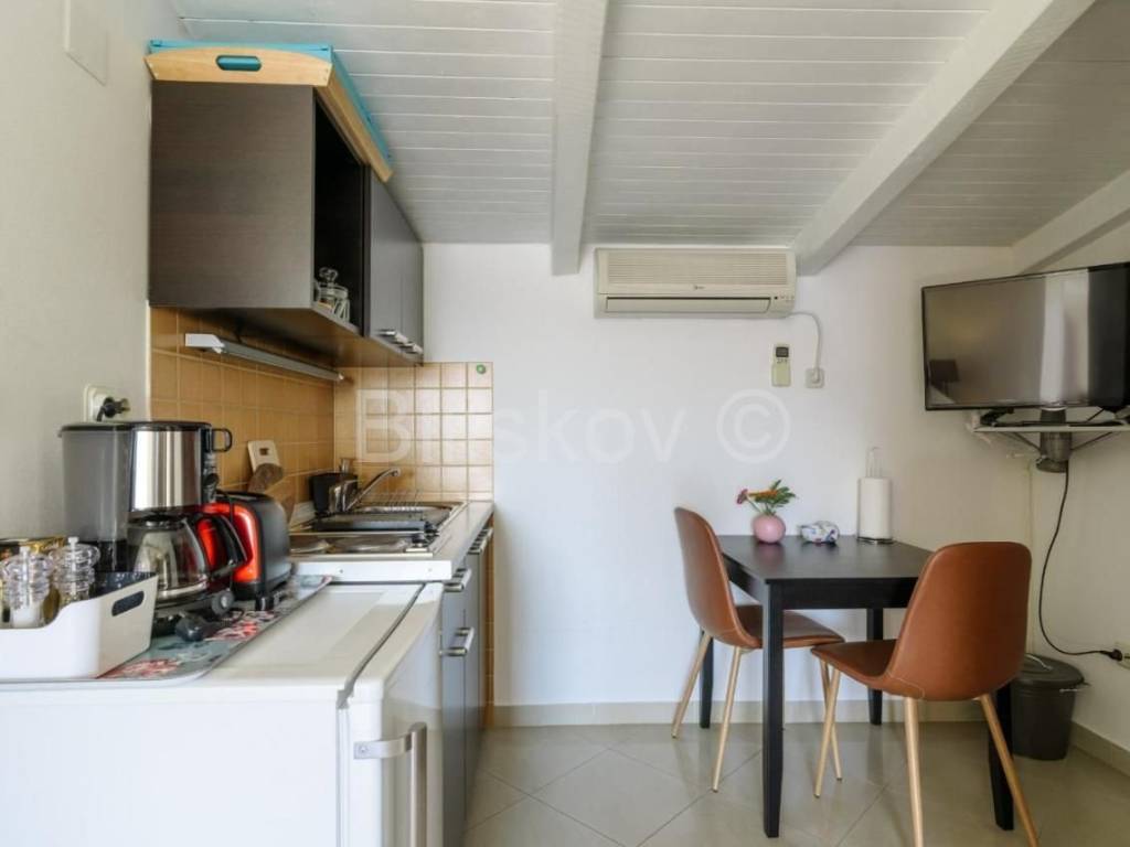Od prvog kata nadalje, svaki kat nudi studio apartman od 30 kvadratnih metara, opremljen svime što vam je potrebno za udoban boravak. Svaki apartman sadrži prostranu kupaonicu, udoban krevet i potpuno opremljenu kuhinju s visokim stropovima koji pružaju osjećaj prozračnosti i otvorenosti. Također, balkoni pružaju mogućnost uživanja u jutarnjoj kavi ili večernjem opuštanju uz predivan pogled na more i okolicu.