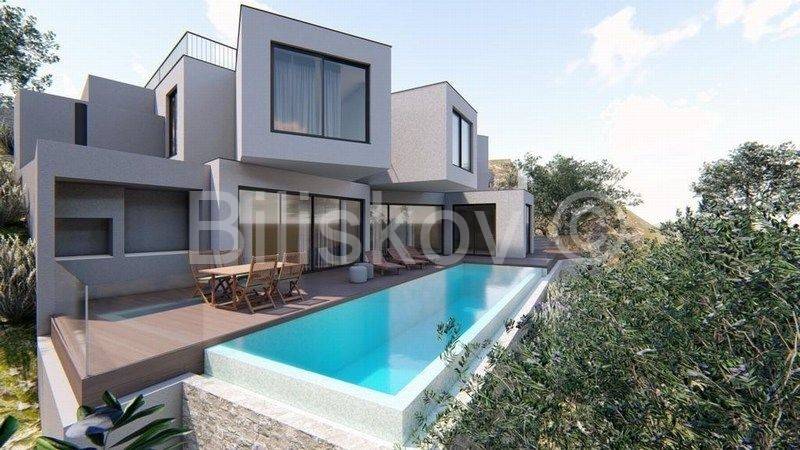 Omiška rivjera, Mimice - građevinska parcela površine 411 m2 s projektom izgradnje vile s bazenom i građevinskom dozvolom.