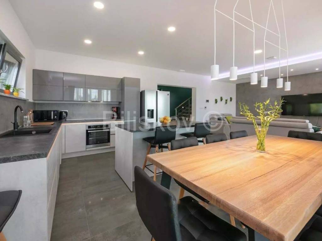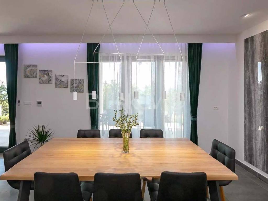 ДВОРДвор состоит из нескольких уровней, которые дополняют эту сказку - один уровень представляет собой бассейн с площадкой для загара, за ним следует детская площадка, средиземноморский сад и просторная летняя кухня. Отличная возможность для тех, кто хочет жить по-королевски. Сад с частным бассейном с подогревом, барбекю, шезлонги, зонтики и крытая терраса со столом и креслами. Вокруг дома произрастает более 200 различных видов растений - вишня, груша, маслина, фотиния, олеандр, лавр, розмарин, лаванда, альбиция и др. Весь сад покрыт системой автоматического полива (запрограммированная система орошения и "капельная"). .