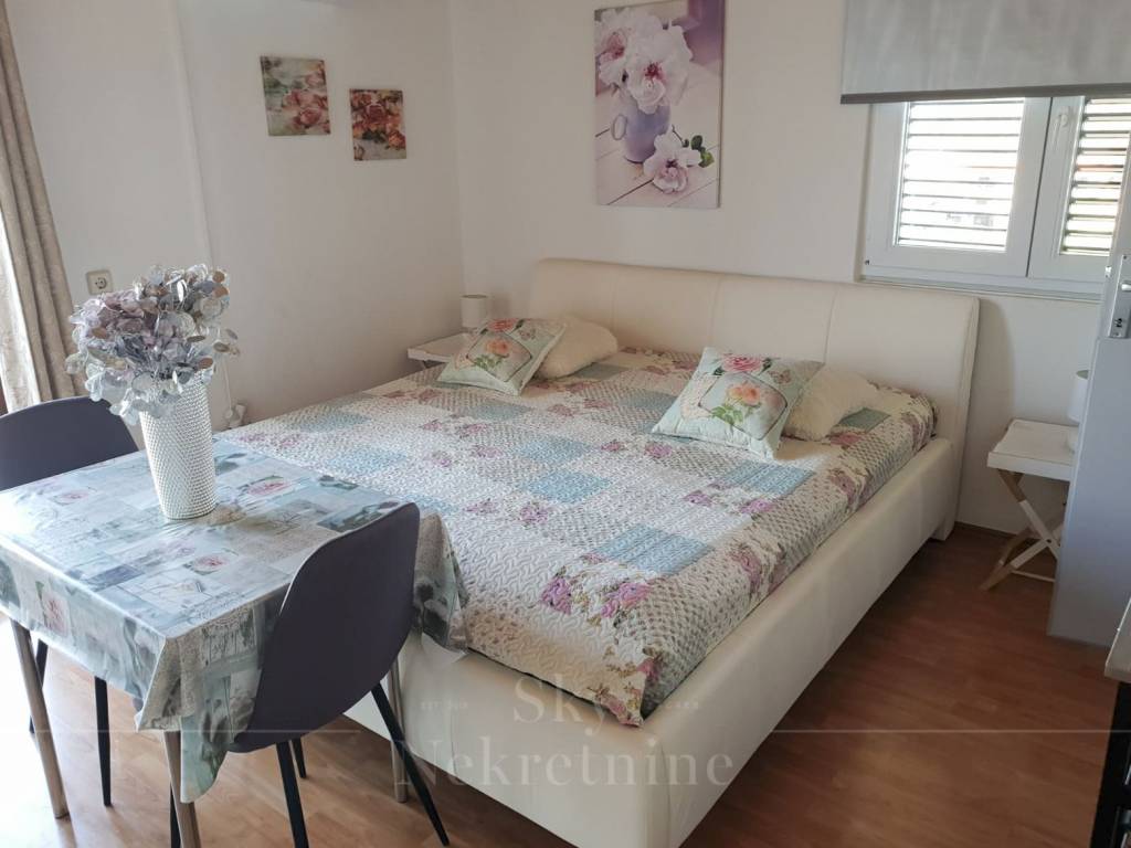 Sky Nekretnine proudly presents a spacious house with a long-standing tradition of tourist rentals, situated in a prime location offering breathtaking sea views. This property holds exceptional investment potential, whether for continuing its well-established rental business, converting it into a luxurious villa, or utilizing it for long-term leasing.