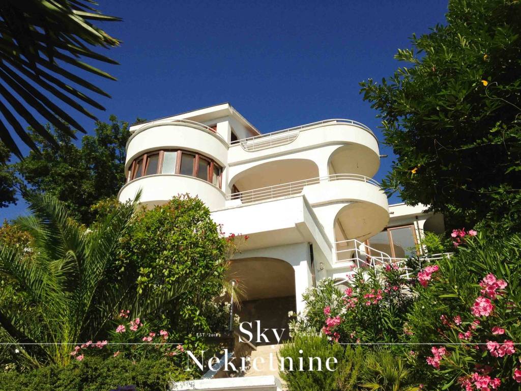 Agencija Sky nekretnine predstavlja samostojeću kuću u Opatiji na izvrsnoj lokaciji u samom centru Opatije. Villa se sastoji od 3 stana (800m2 stambenog prostora), te uređene okućnice od 433m2. Kuća je razvedena na četiri etaže, a sa svih etaža pruža se prekrasan pogled na more. Dodatni studio apartman uz bazen, garaža površine 21.17m2 i četiri dodatna parkirna mjesta upotpunjuju ovu kuću.